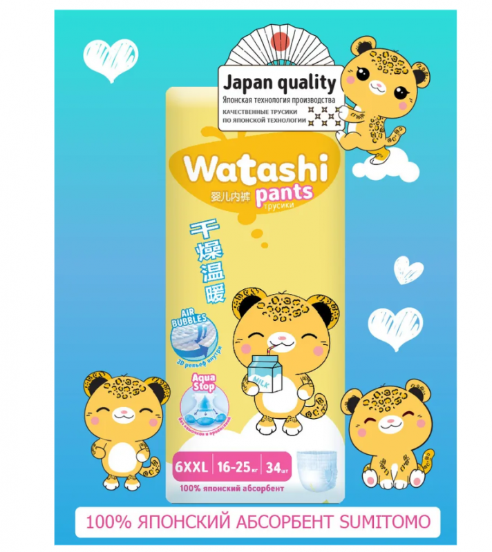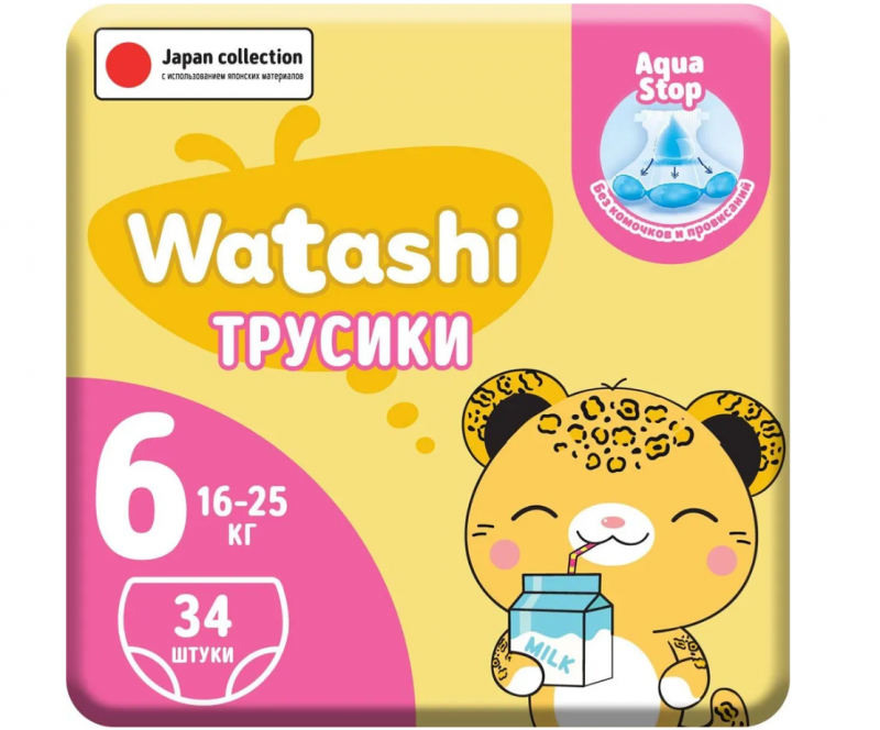 Подгузники трусики детские 6 XXL размер 16-25 кг, 34 шт, WATASHI