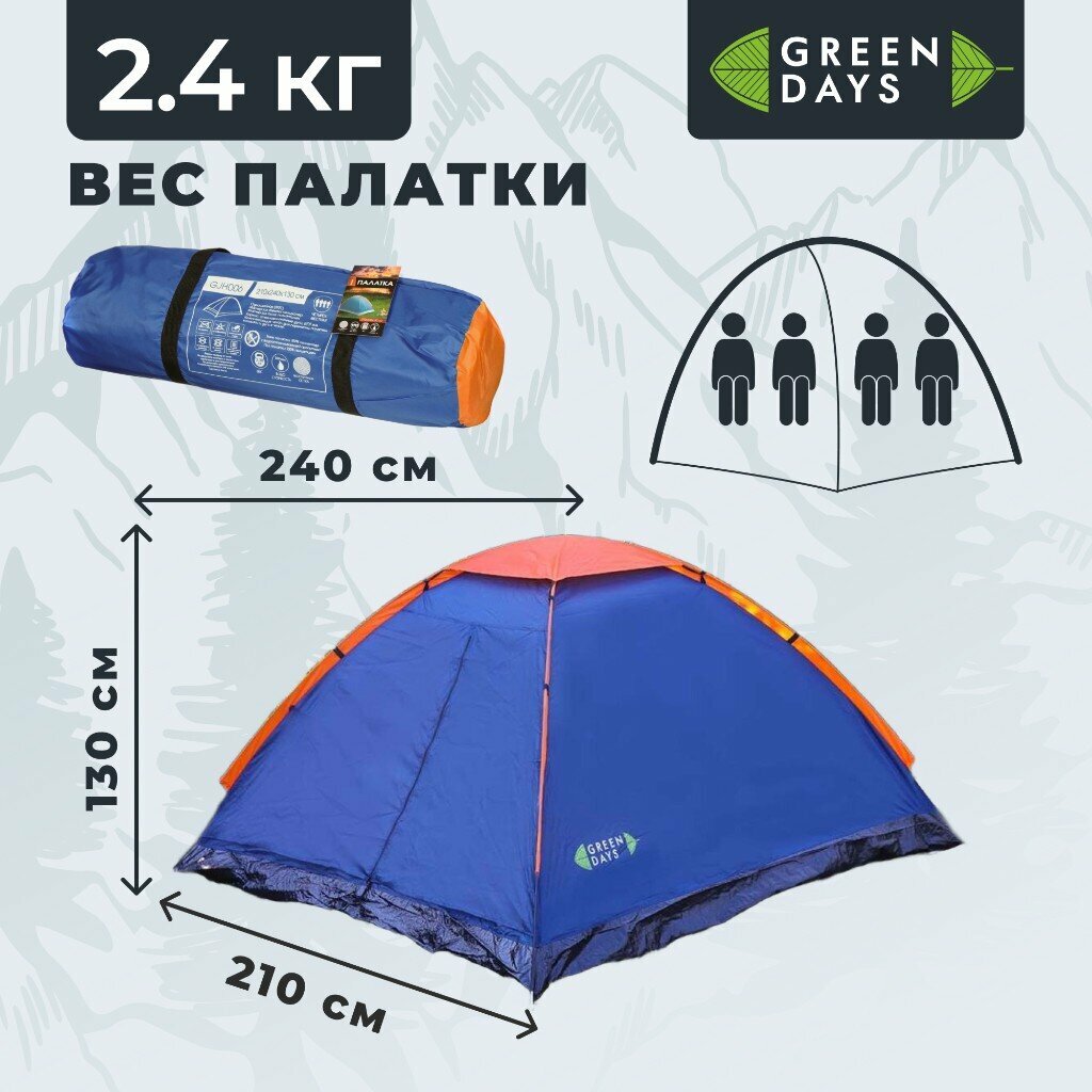 Купить Палатка 4-местная, 240х210х130 см, 1 слой, 1 комн, с москитной сеткой, Green Days, GJH006