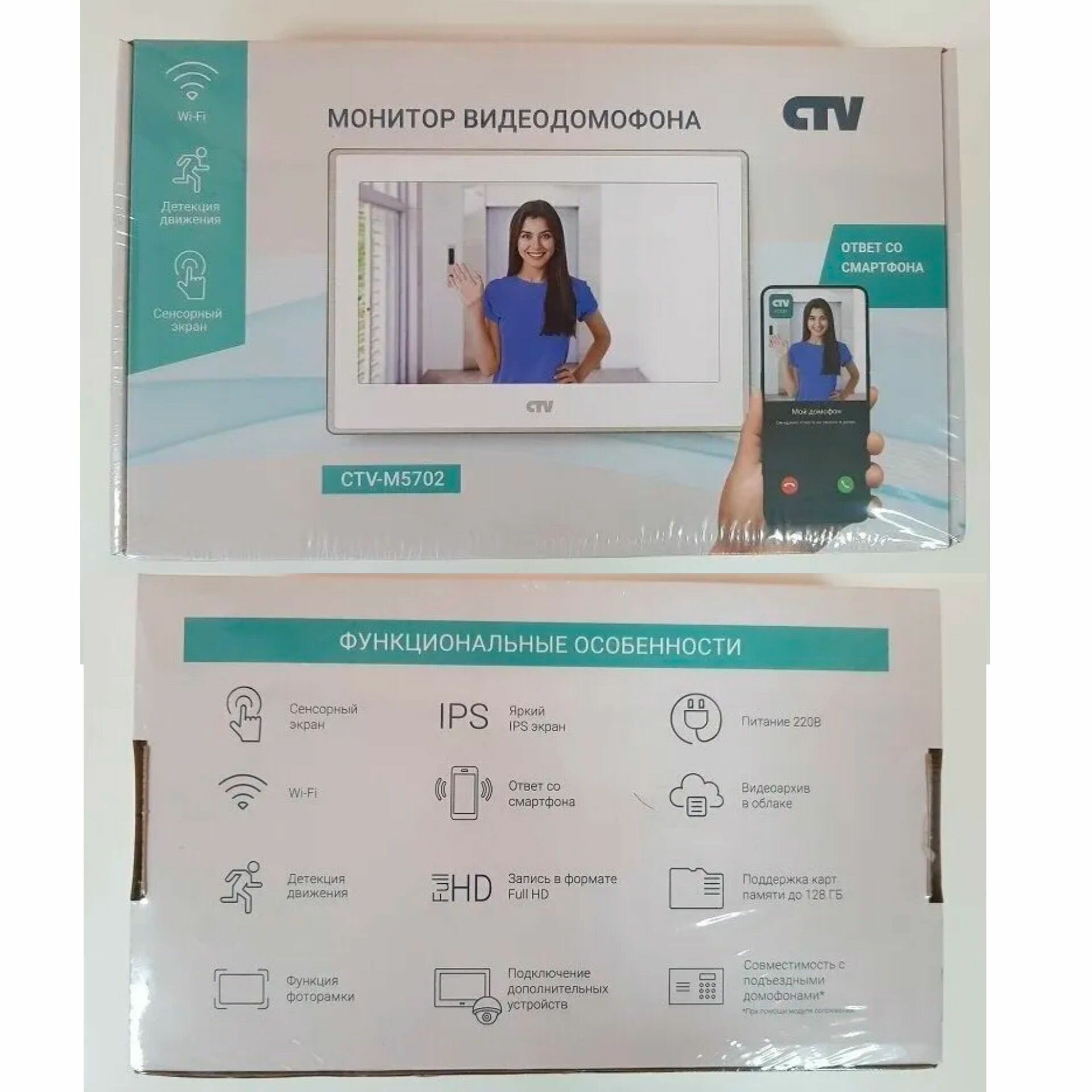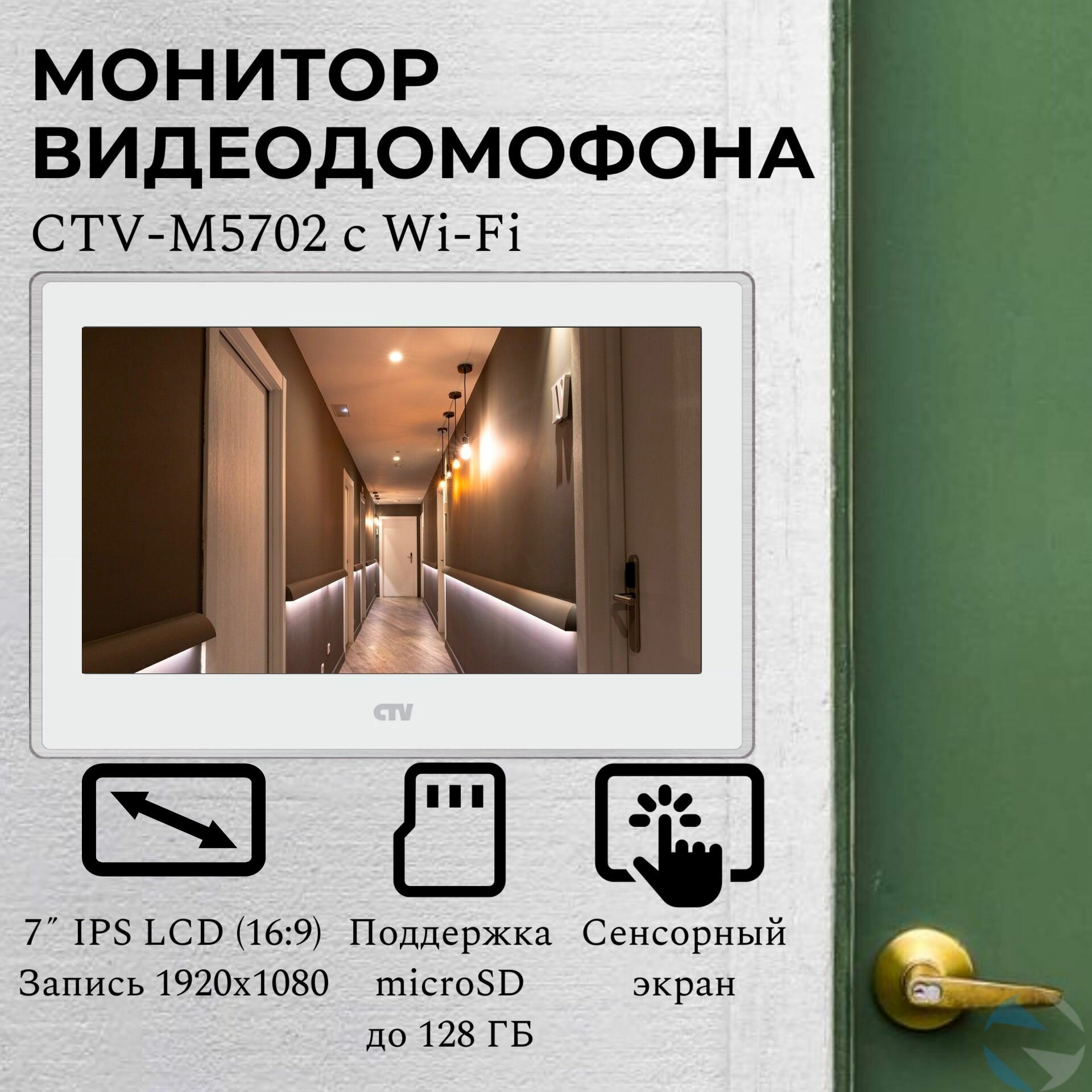 Монитор видеодомофона CTV-M5702 с Wi-Fi , 7, Full HD, Touch Screen, внешняя Wi-Fi антенна (Белый)