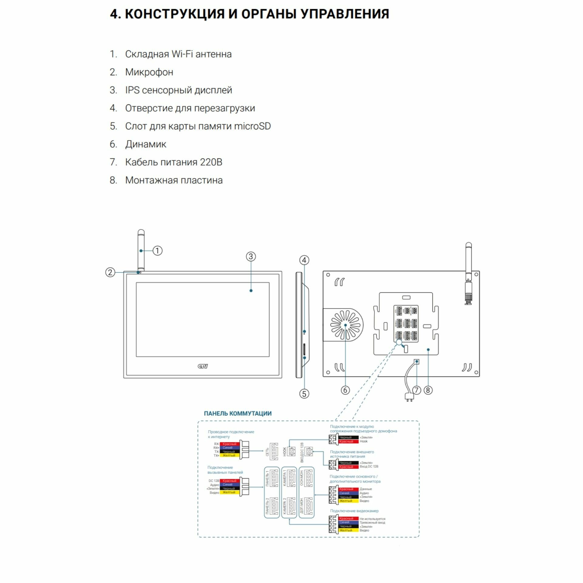 CTV-M5702 (белый) сенсорный 7" монитор видеодомофона с Wi-Fi
