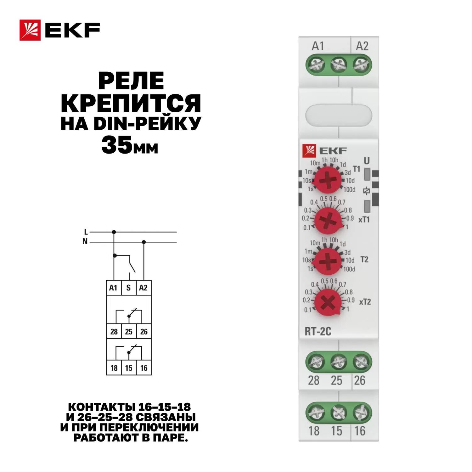 Реле времени (2 регулир. порога вр. 2 исп. конт.), EKF RT-2C (1 шт.)