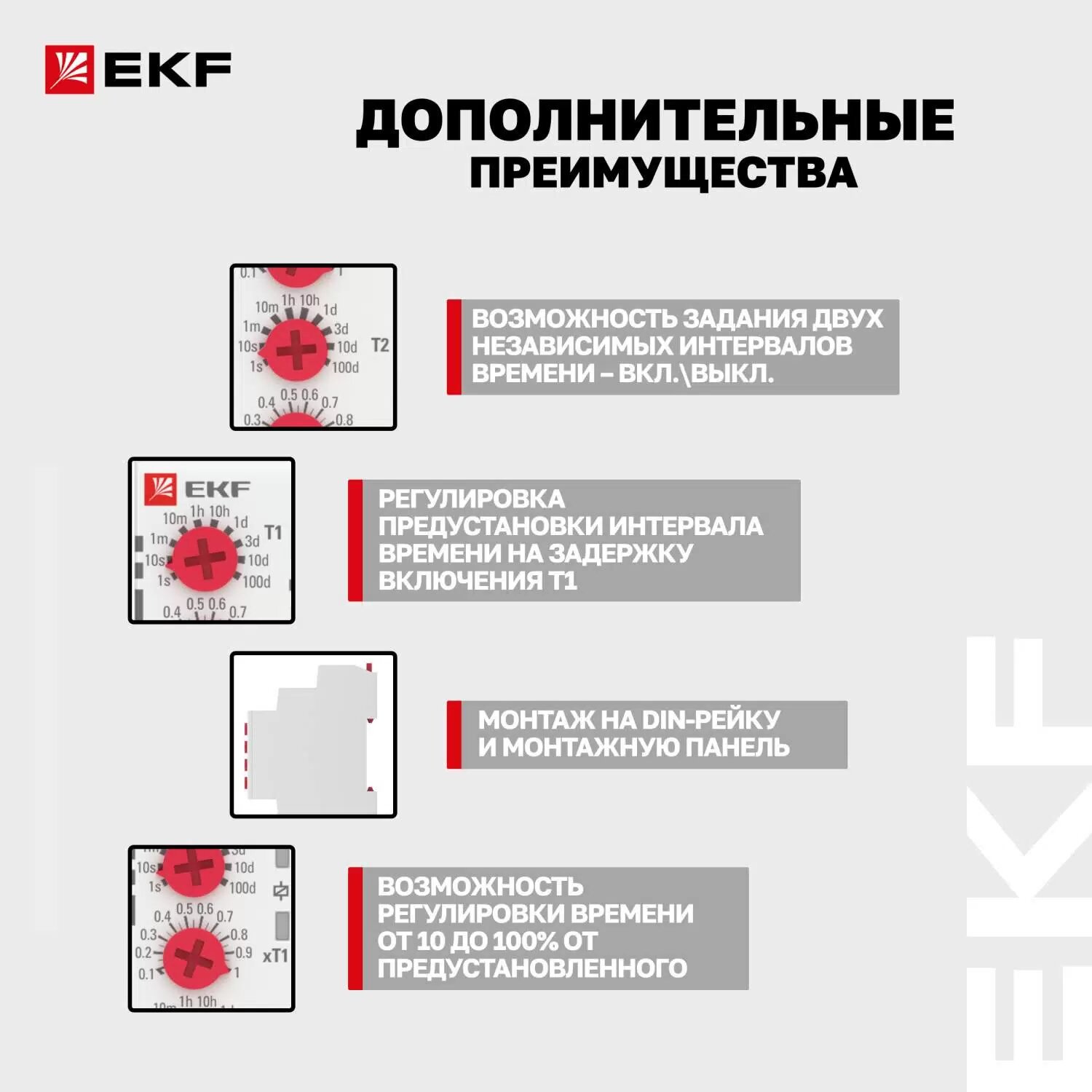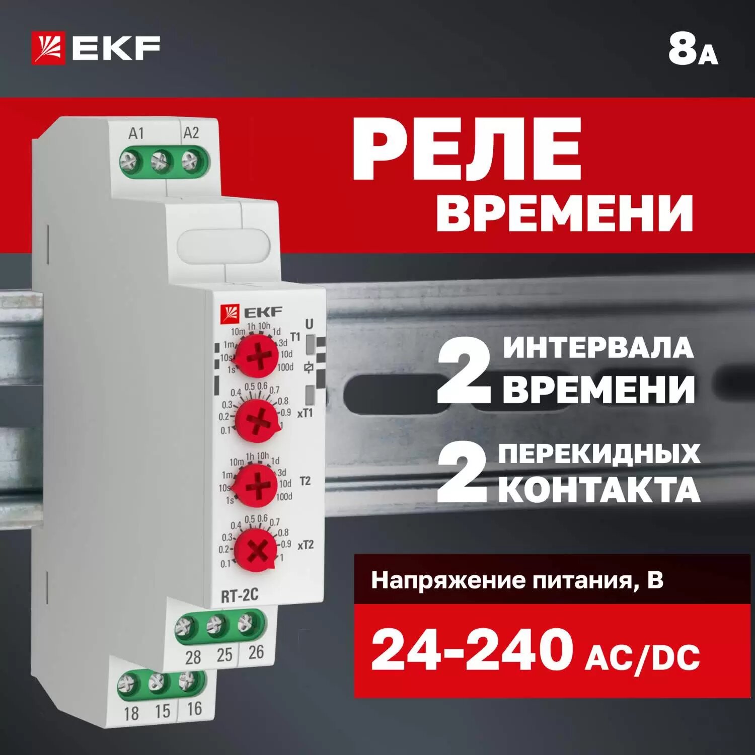 Реле времени (2 регулир. порога вр. 2 исп. конт.) rt-2c EKF RT-2C (1 шт.)