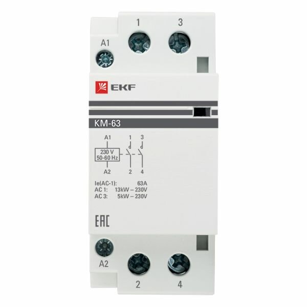 Контактор модульный EKF КМ 63А 2NО (2 мод.), km-2-63-20