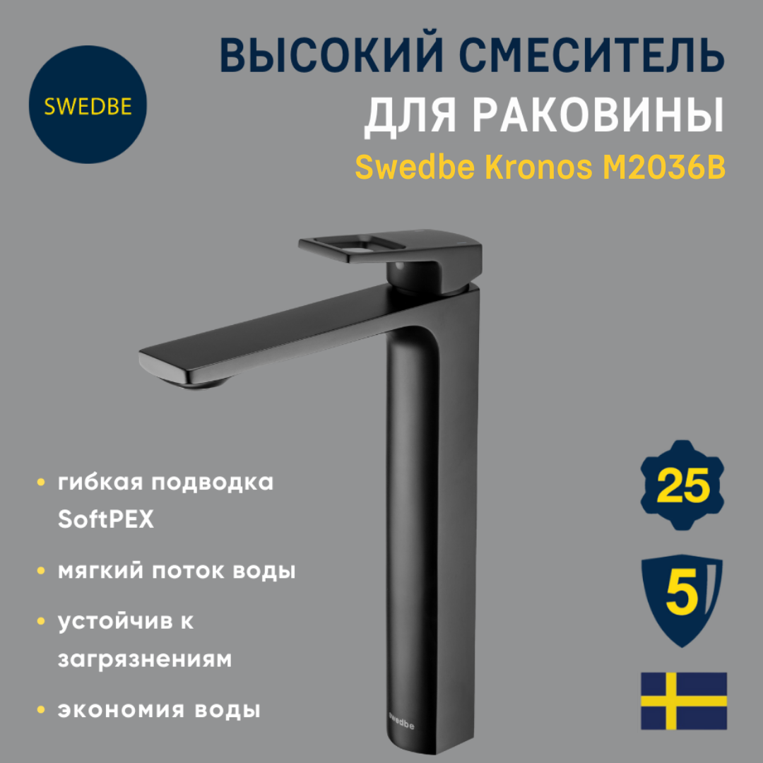 смеситель для раковины SWEDBE Kronos 2015B высокий черный