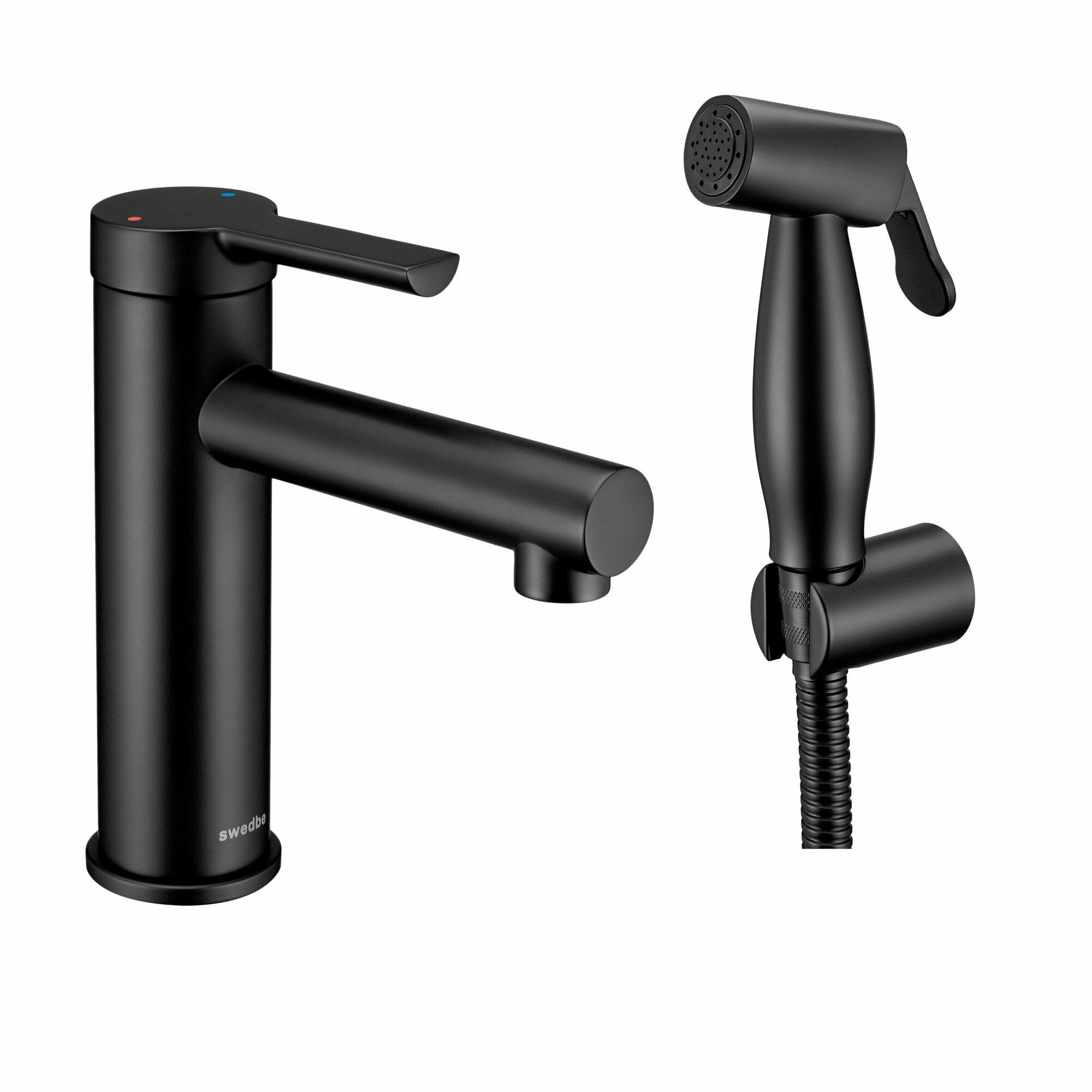 Swedbe Diana Смеситель для раковины с гигиеническим душем, в скандинавском стиле, цвет: черный 1060B