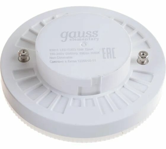 Лампочка светодиодная Gauss Elementary 13В эквивалент 110В 3000K 890Лм GX53 таблетка 83813 (комплект из 10 шт.)