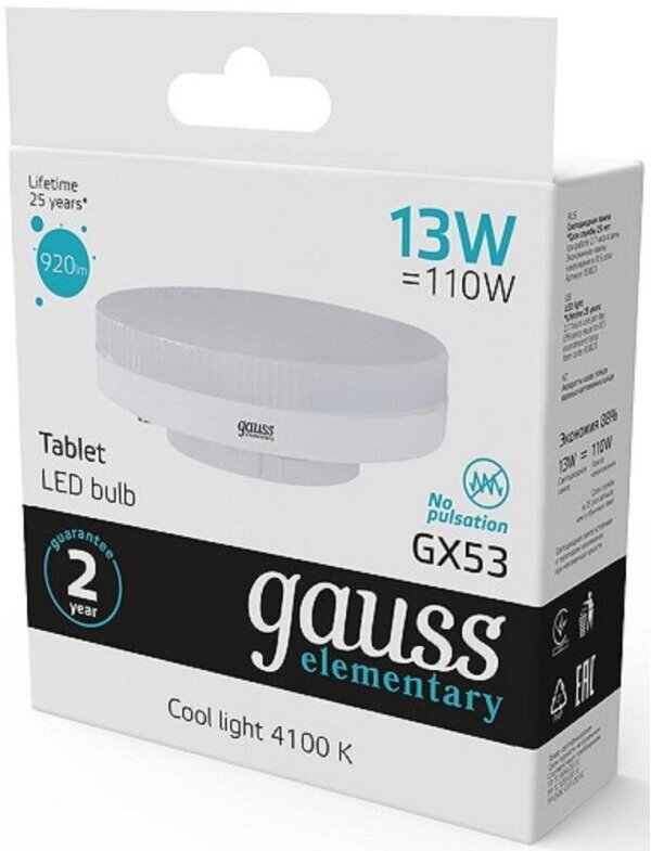 Лампа Gauss Elementary GX53 13W 920lm 4100K LED 83823 (2 шт)