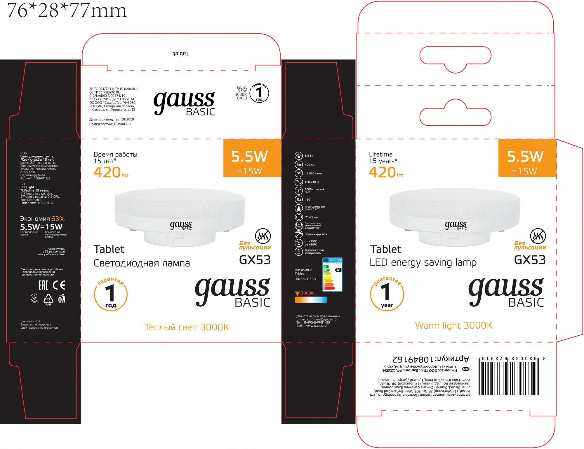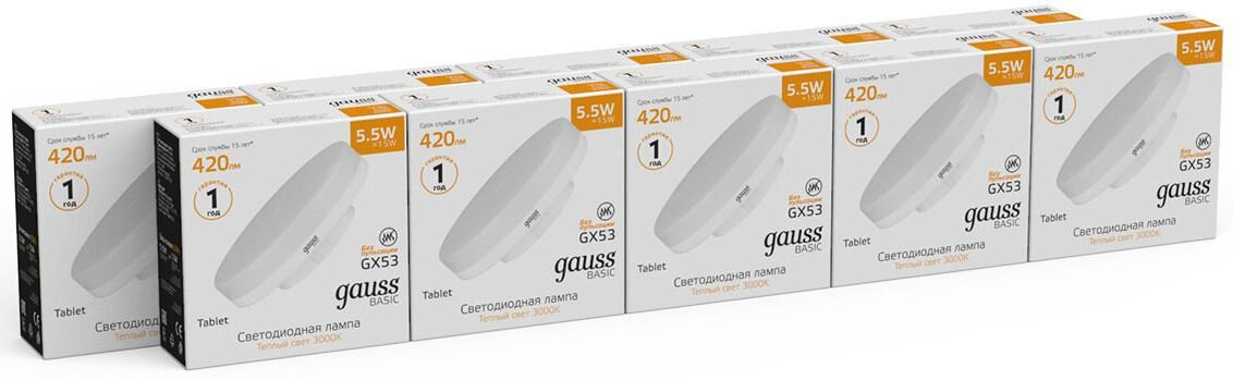 Светодиодная лампа Gauss Basic GX53 5,5W 420lm 3000K LED 1/10/100 интересное: