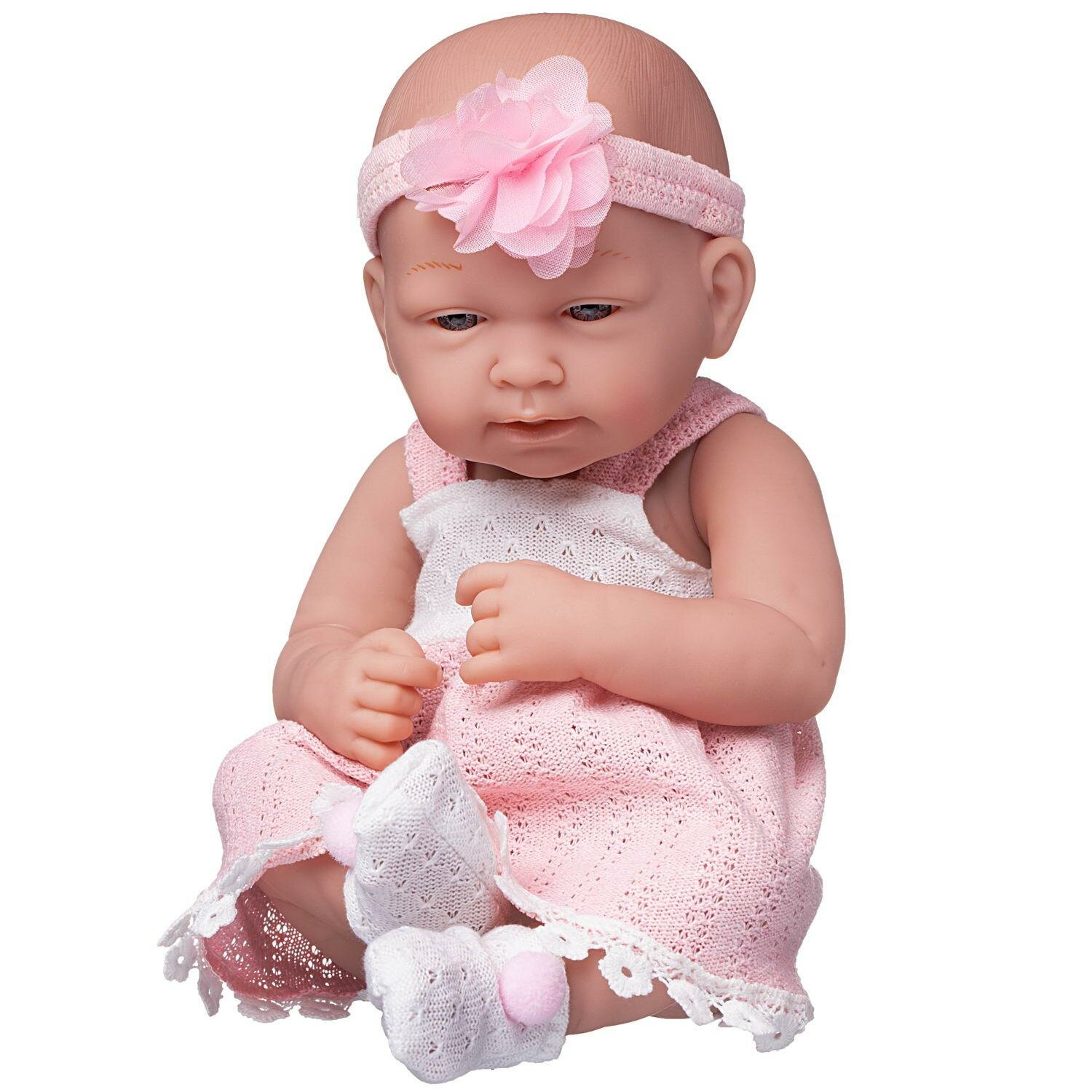 Реалистичная кукла "Пупс Junfa Pure Baby в ажурном бело – розовом платье" Junfa