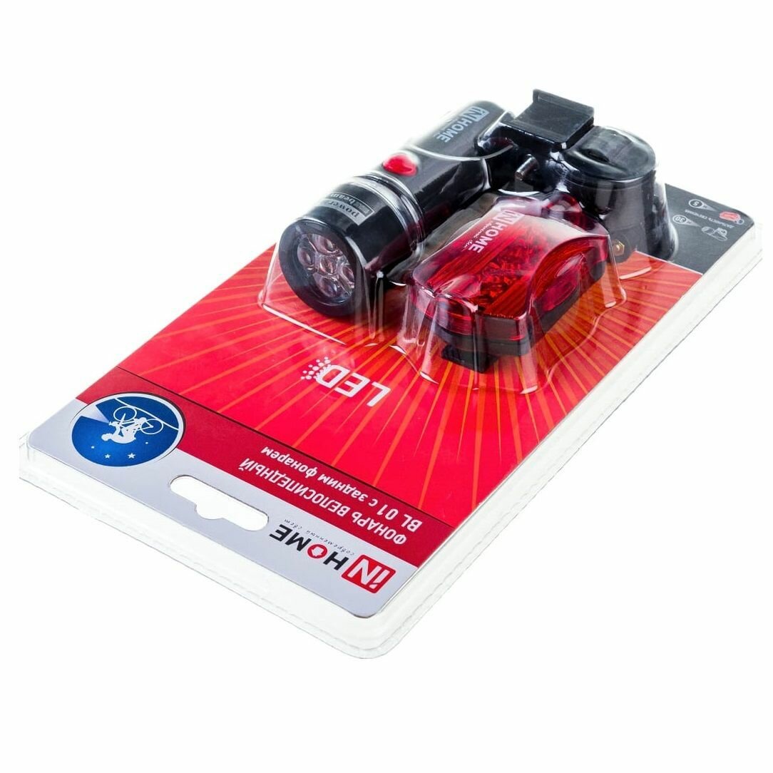 Велосипедный фонарь IN HOME BL 01 5LED с задним фонарем 4AAA 3 режима с кронштейном черный 4690612035192
