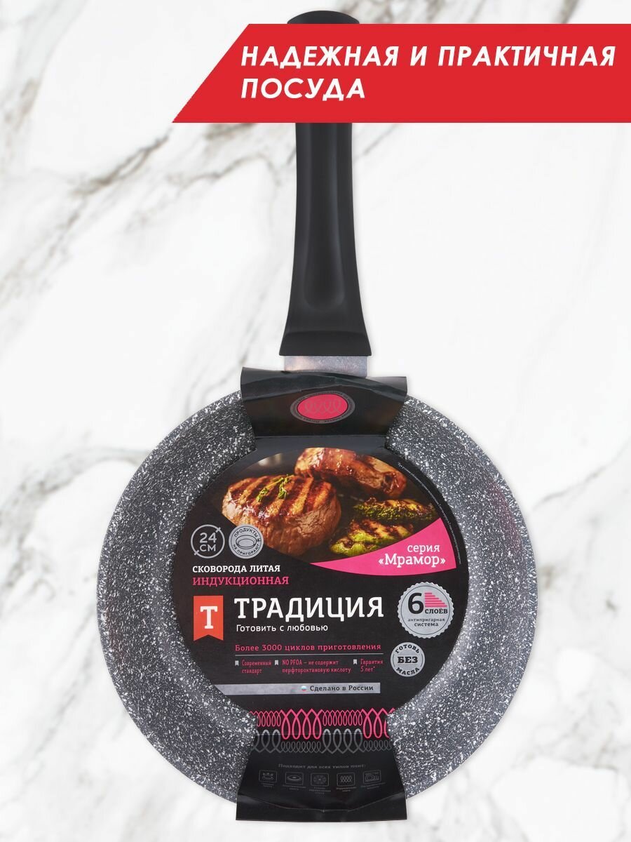 Сковорода Традиция Мрамор индукция антипригарная, литая, 22 см