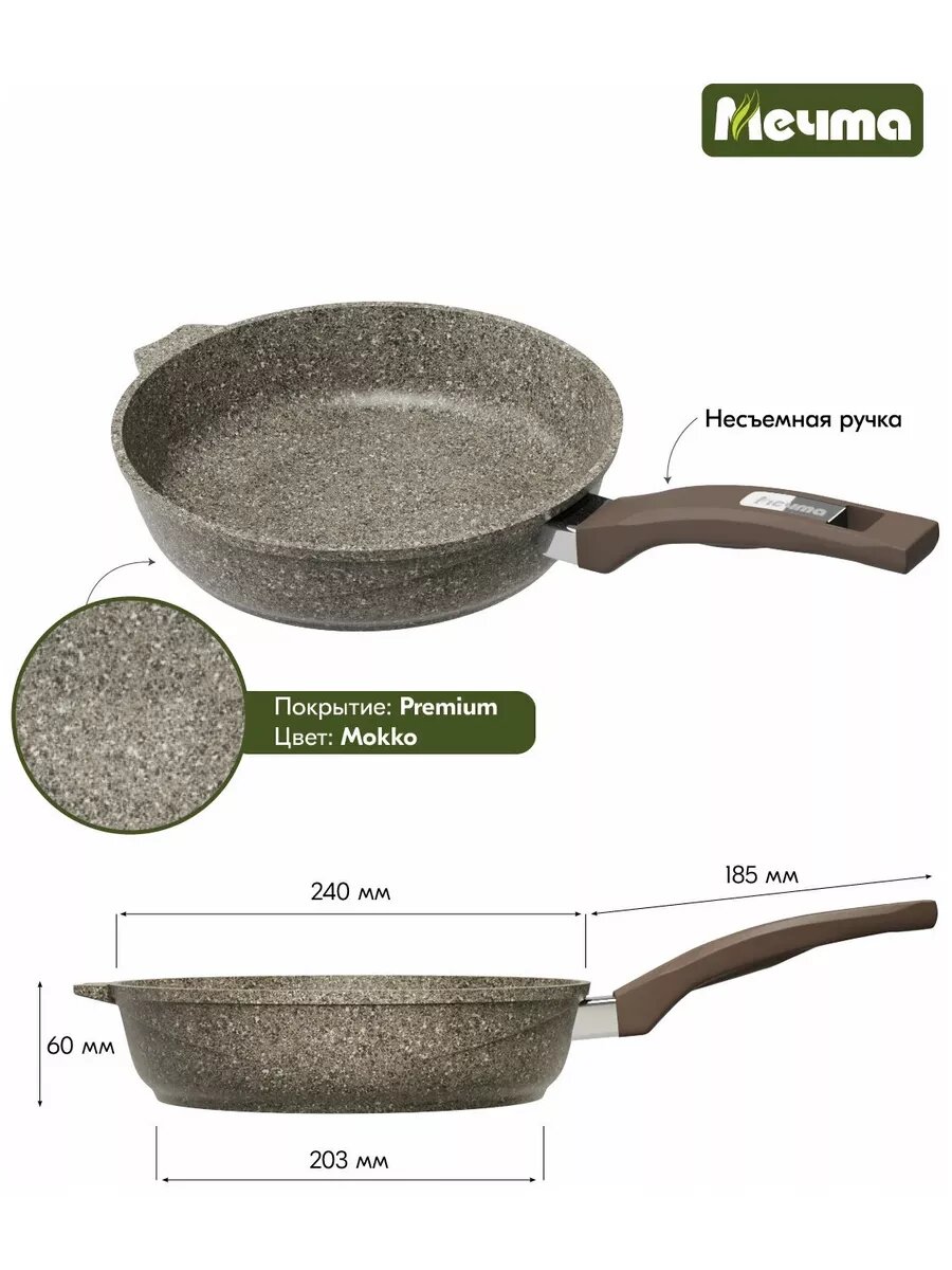 Сковорода Мечта Посуда мечта "Premium" (mokko) съемная ручка, 18 см