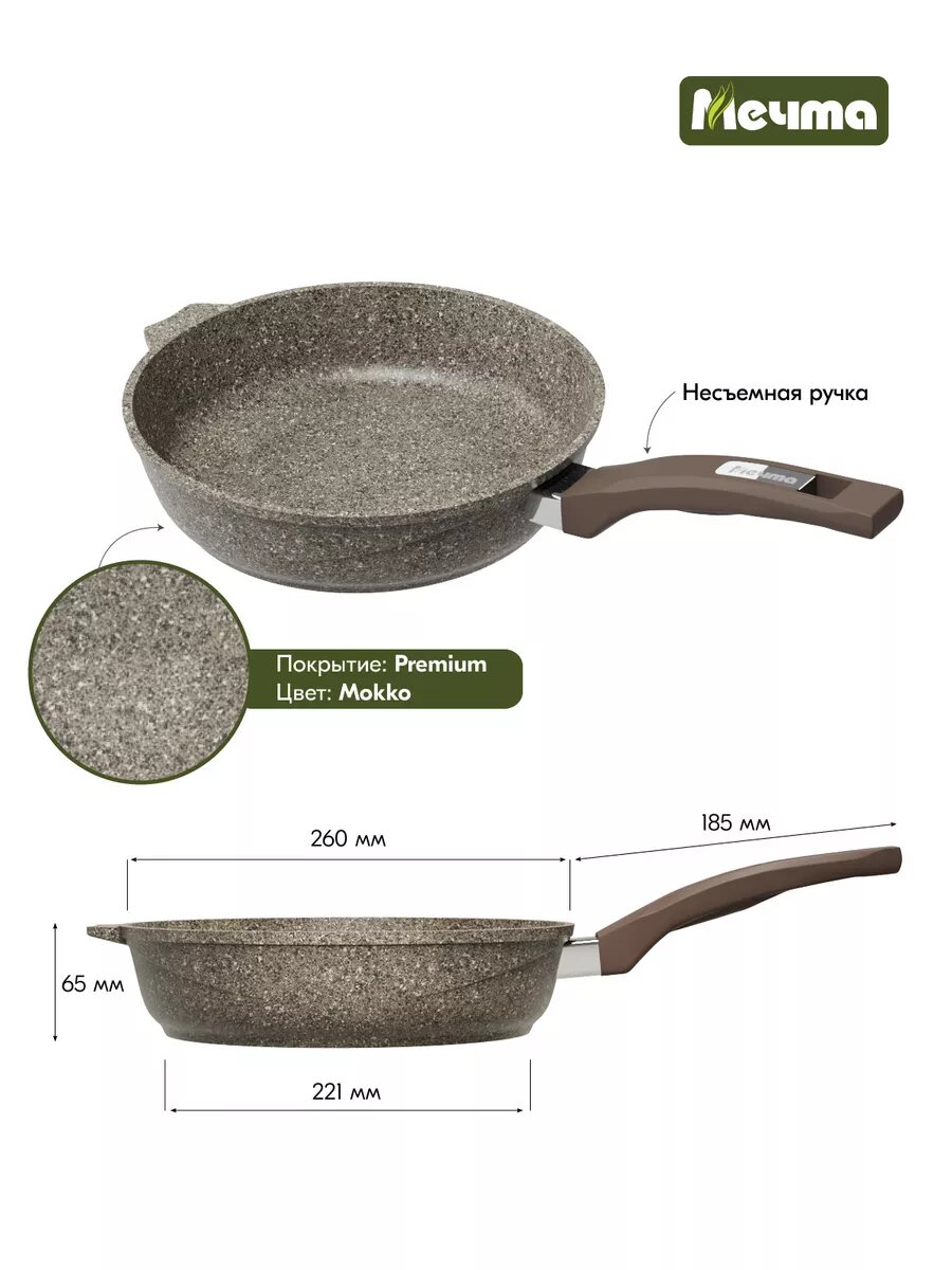 Сковорода Мечта Посуда мечта "Premium" (mokko) съемная ручка, 18 см