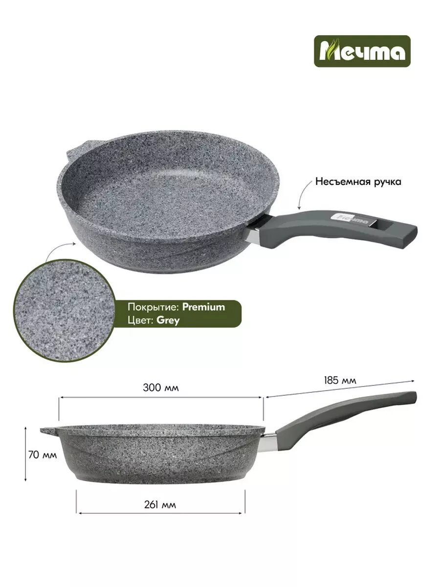 Сковорода Мечта Посуда мечта "Premium" (grey) несъемная ручка, 22см