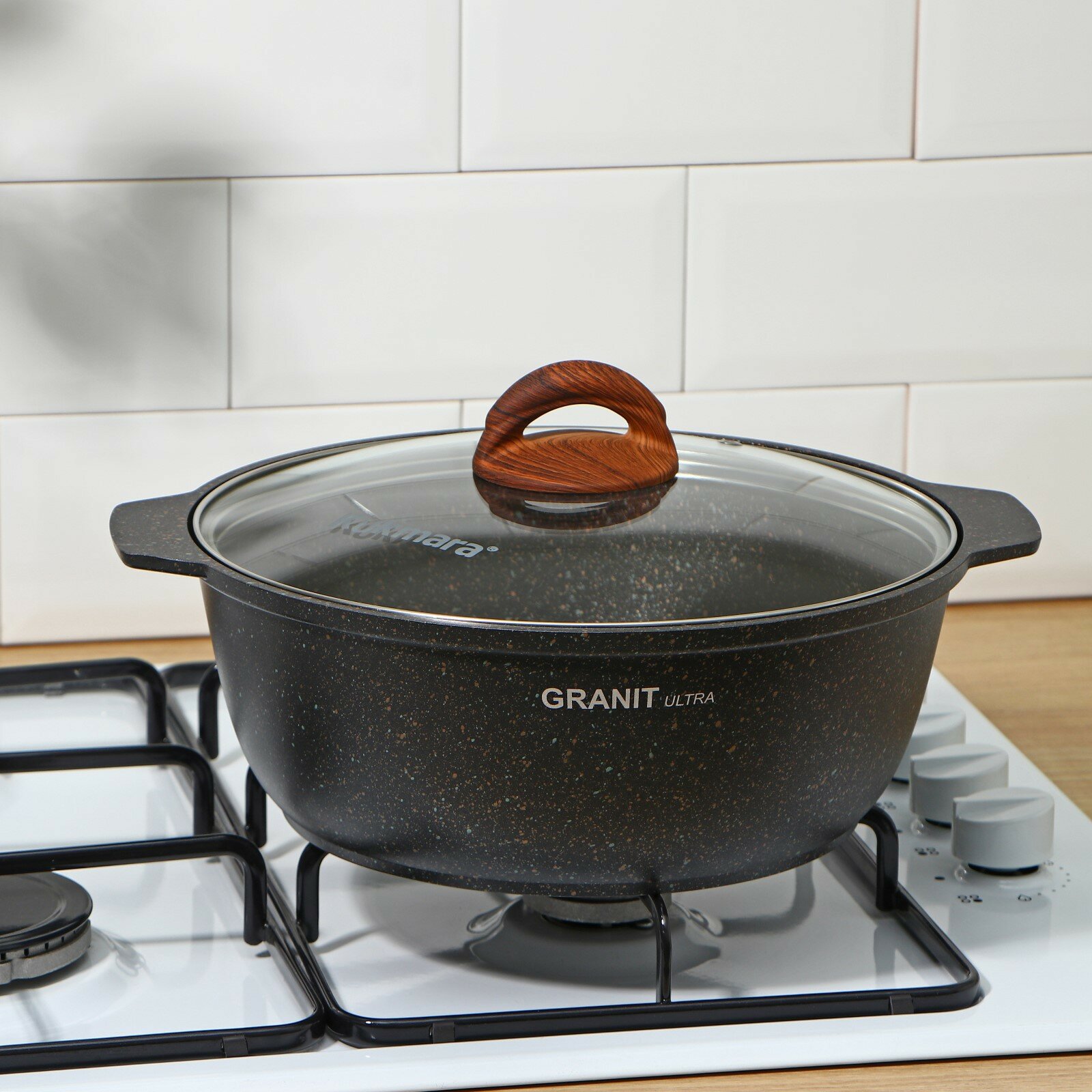 Купить Кастрюля-жаровня KUKMARA Granit ultra original, 4 л, стеклянная крышка, антипригарное покрытие, чёрный