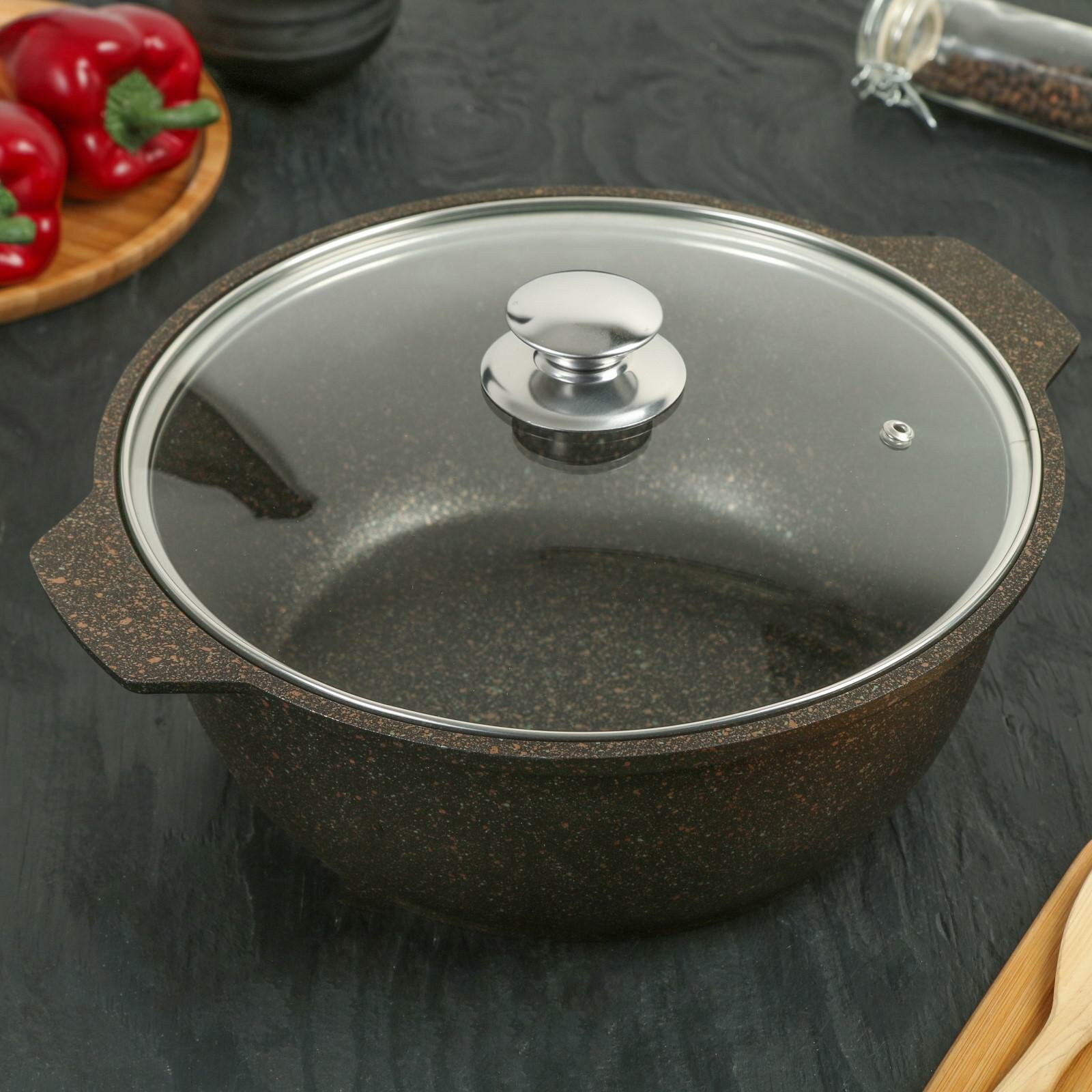 Кастрюля-жаровня Granit ultra original, 3 л, d=27см, стеклянная крышка, антипригарное покрытие, цвет .