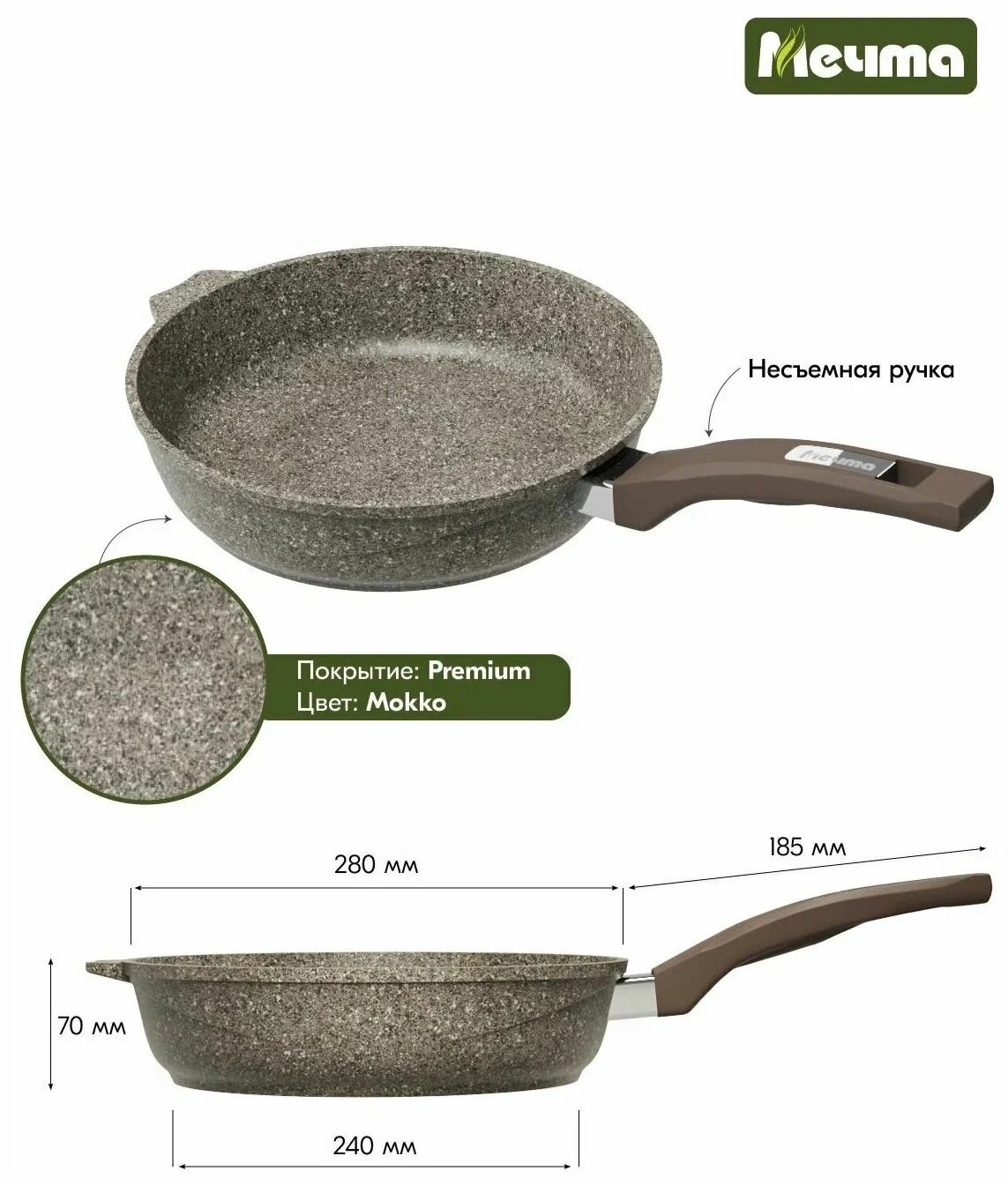 Сковорода с антипригарным покрытием 26 см с ручкой Premium mokko Мечта
