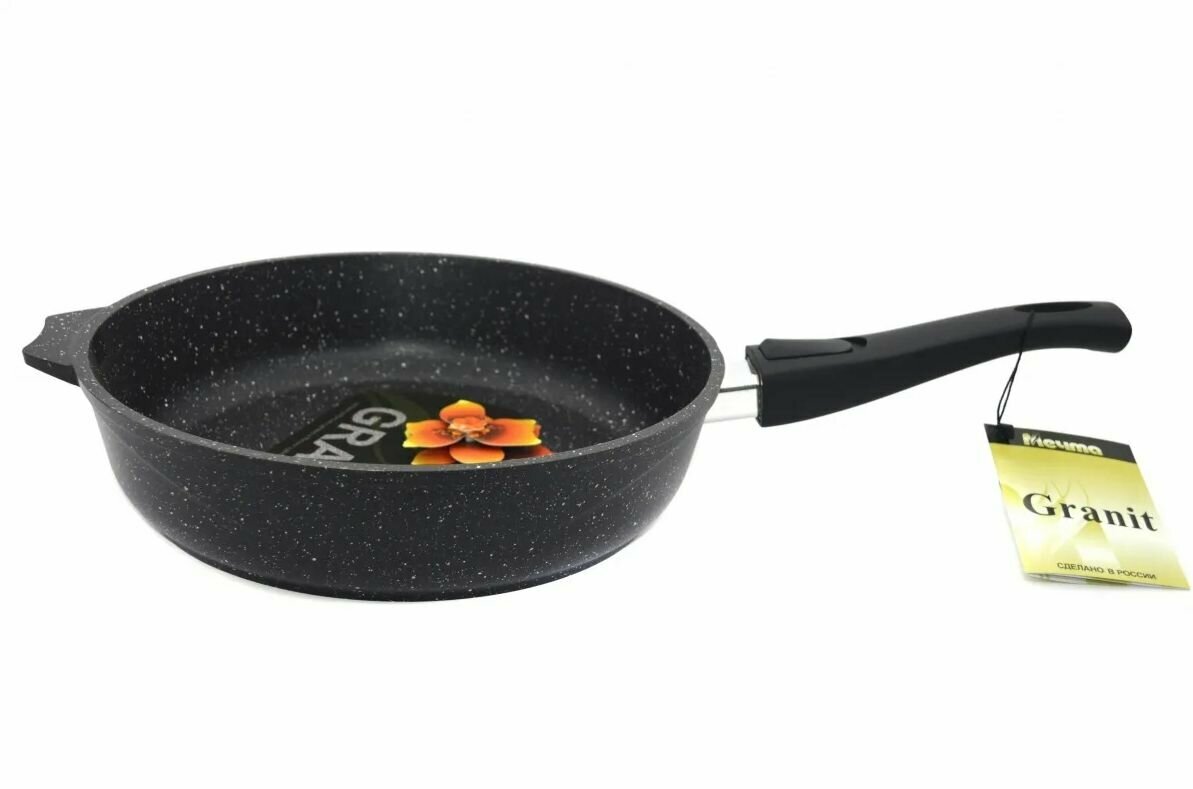 Сковорода мечта 22см с ручкой, антипригарное покрытие, Гранит, black