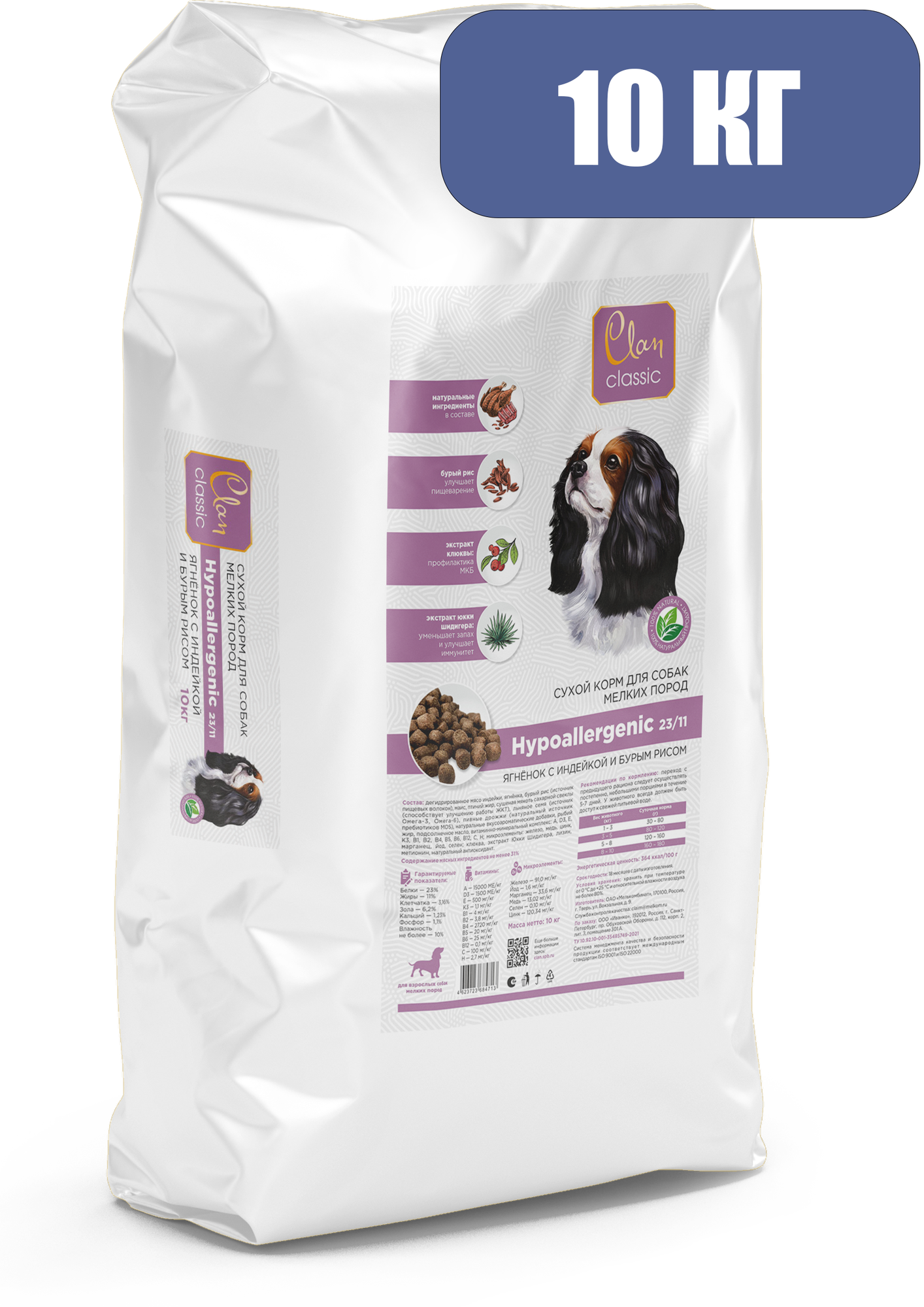CLAN CLASSIC Hypoallergenic-23/11 корм сухой для собак мелких пород Ягненок Индейка и бурый рис 10кг
