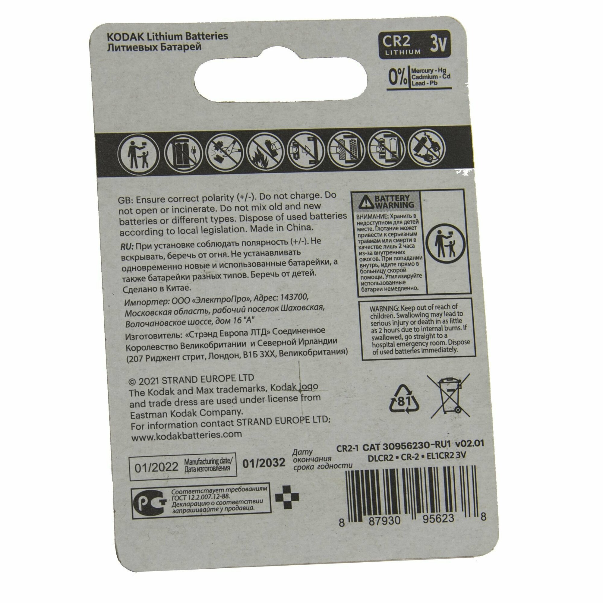 Батарейка Kodak MAX CR2 BL1 Lithium 3 вольта интересное: