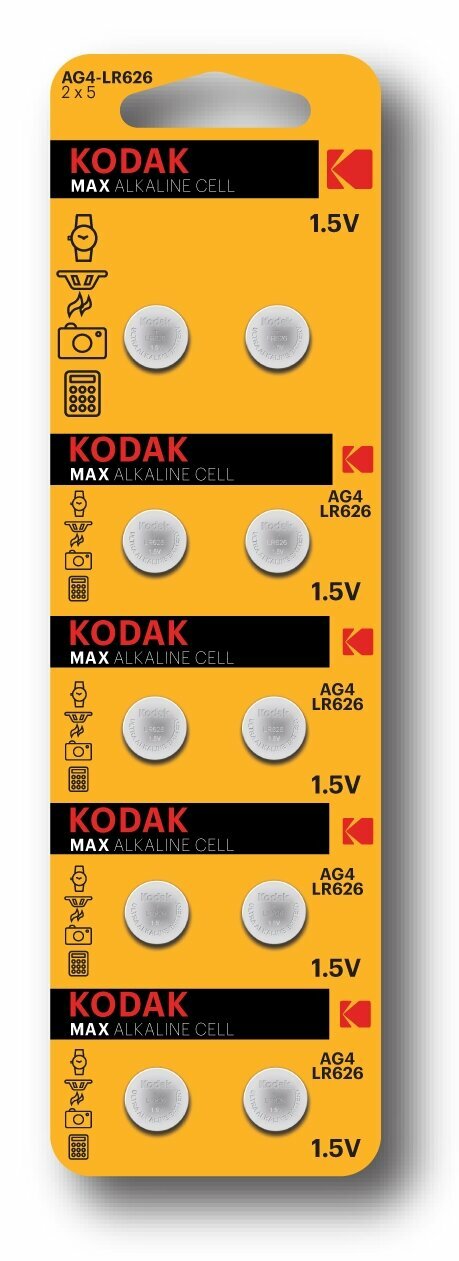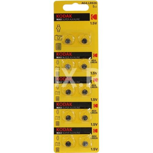 Батарейки Kodak AG4 (377) LR626, LR66 [KAG4-10] MAX Button Cell (100/1000/98000) / набор 10шт