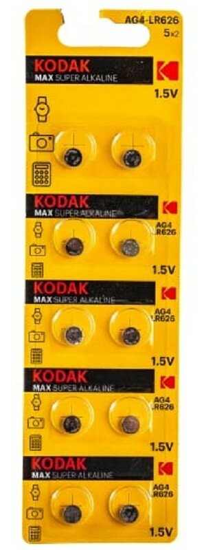 Батарейка алкалиновая Kodak, AG4 (G4, 377, LR626, LR66)-10BL, 1.5В, блистер, 10 шт.
