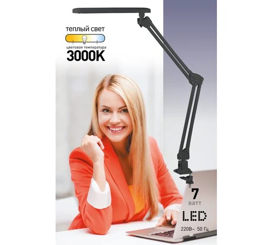 ЭРА Б0008002 Настольный светодиодный светильник Nled-441-7w-bk черный Крепление струбцина, цвет. те