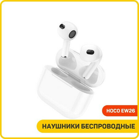 Беспроводные Bluetooth-наушники Hoco TWS EW26, с микрофоном, цвет белый, 1 шт