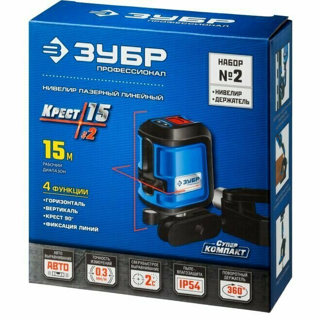 Купить Нивелир лазерный ЗУБР Профессионал Крест-15, суперкомпакт, 15м, точн. +/-0,3 мм/м, держатель