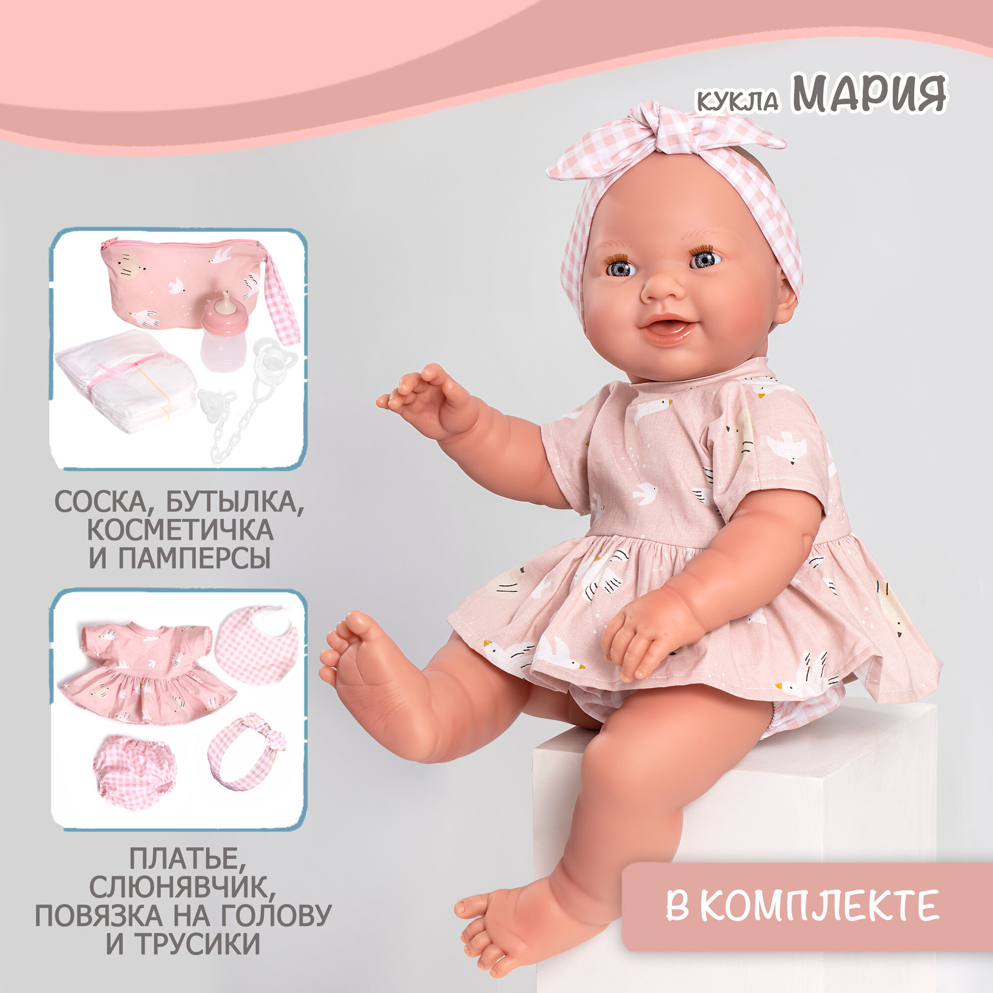 Купить Кукла-пупс реборн интерактивная виниловая Antonio Juan 50393 Мия Мария, 42 см, пьет-писает, закрывает глаза, с подгузником, бутылочкой и косметичкой