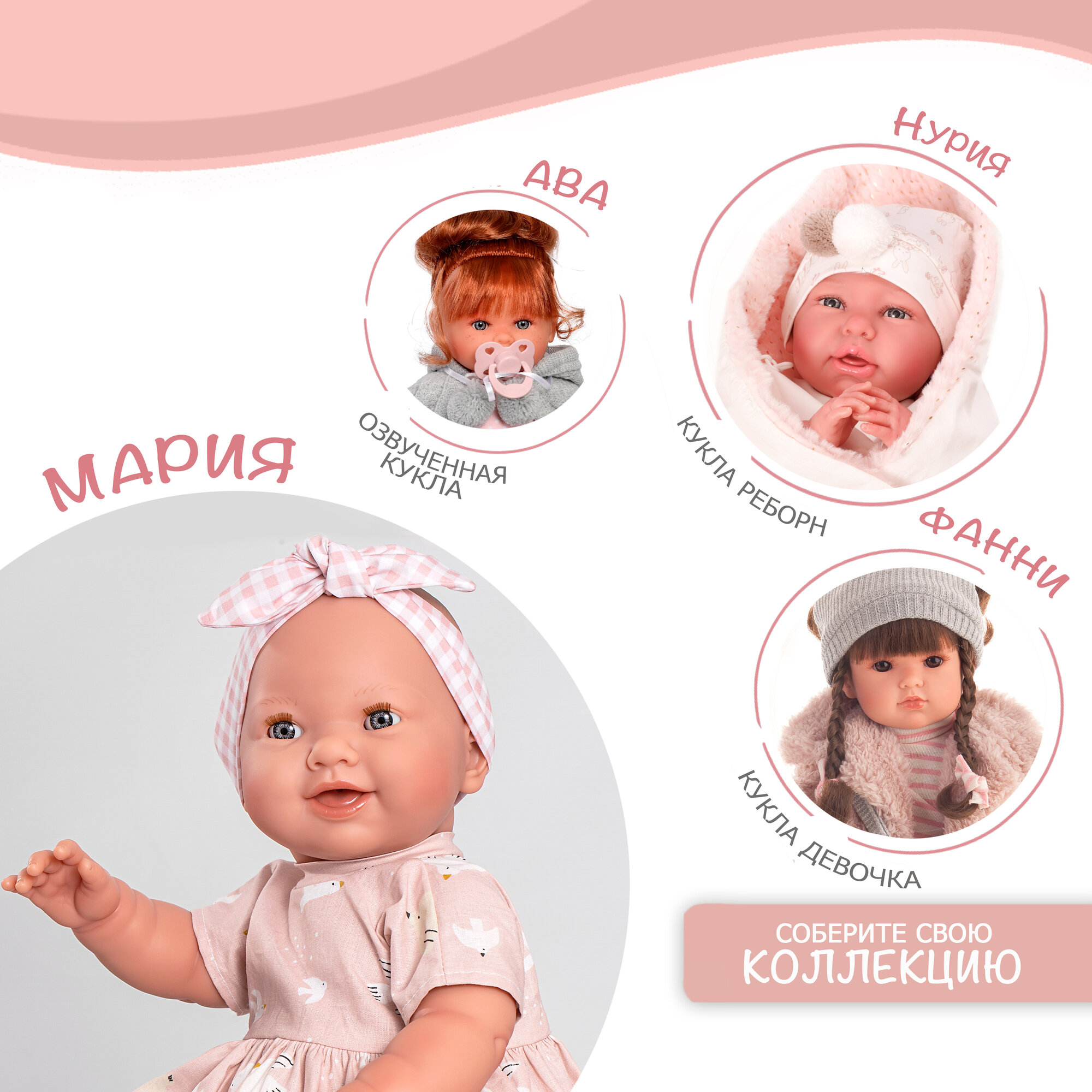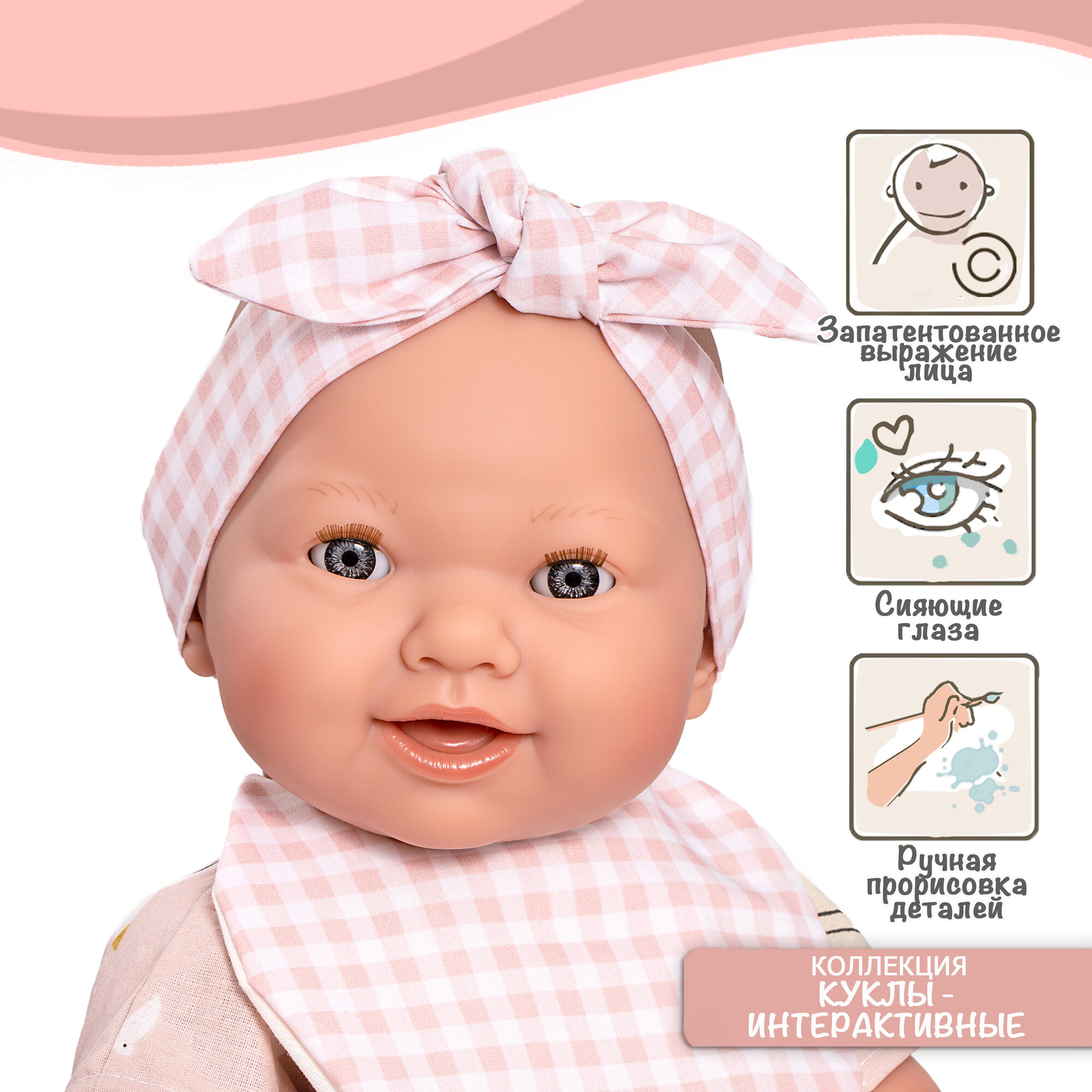 Кукла Реборн испанская ANTONIO JUAN Натали в розовом, 40 см, виниловая 80220