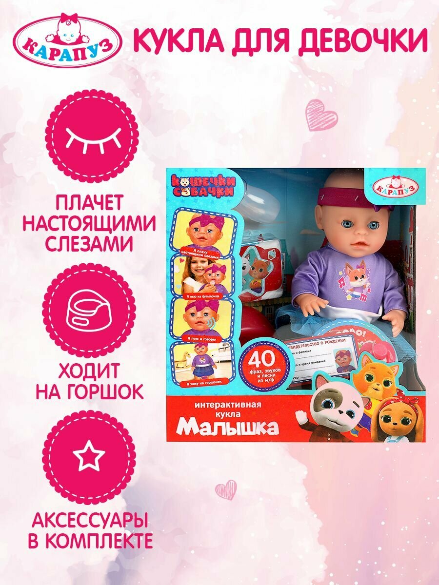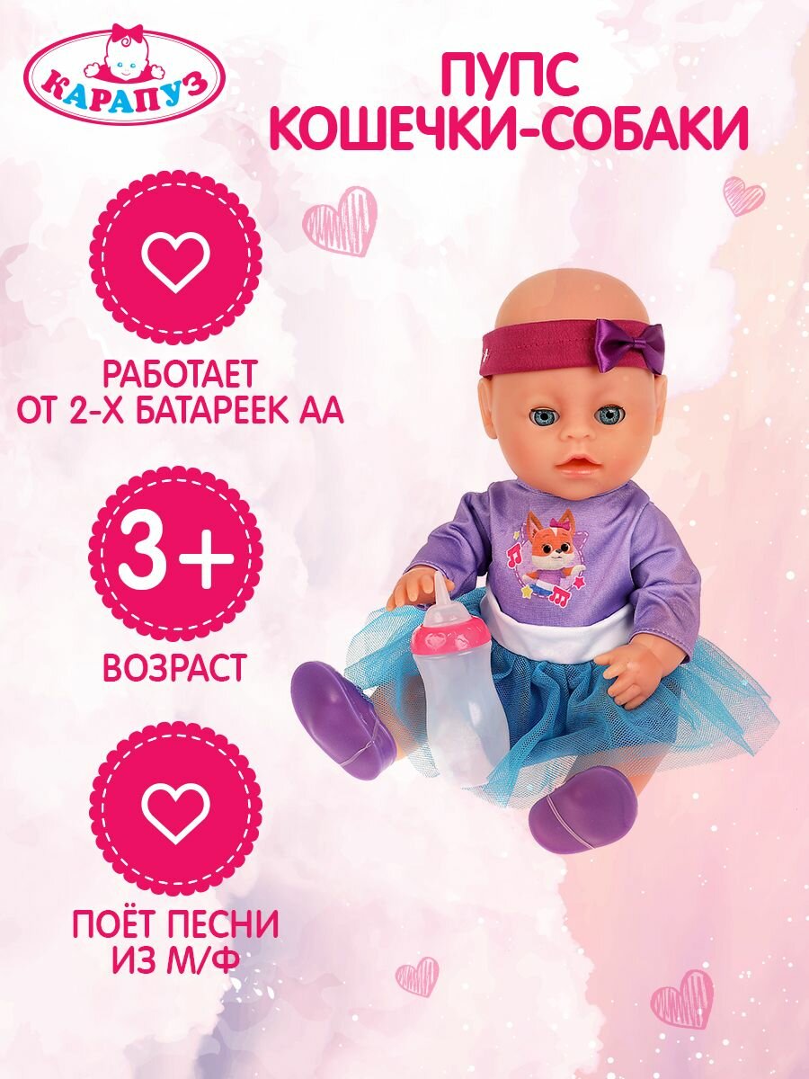Купить Пупс озвученный Кошечки - Собачки, 30 см, пьет, писает, плачет, 40 фраз и песен Карапуз Y30BB-DPC-CD-RU