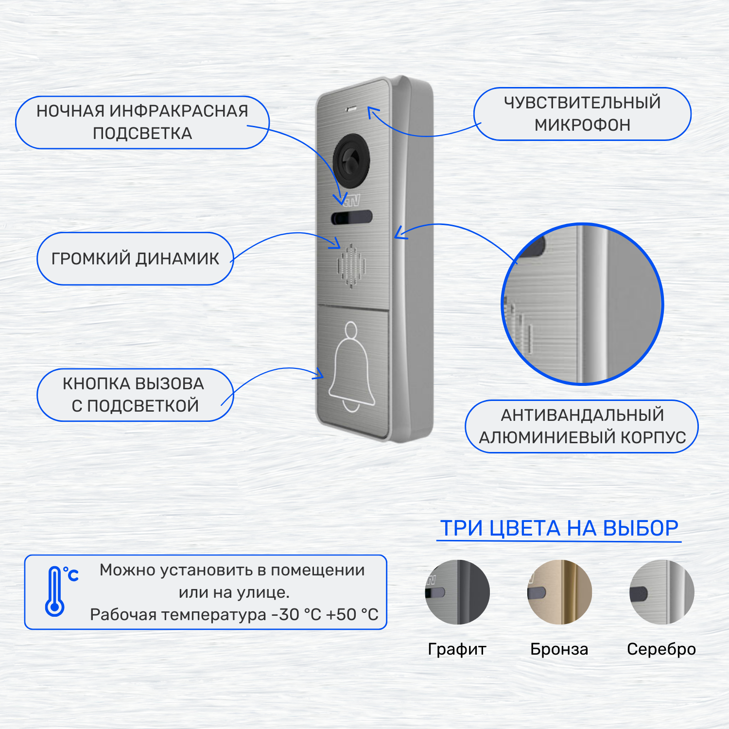 | Материал кнопок звонков | алюминий |