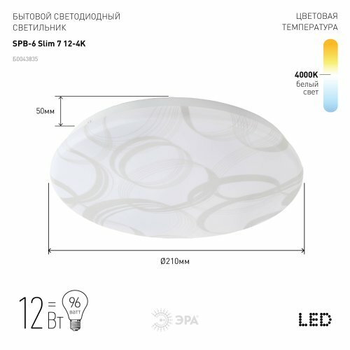 SPB-6 Slim 3 12-4K Бытовые свет Светодиодный светильник 12Вт 4000K, ЭРА Б0043823 (1 шт.)