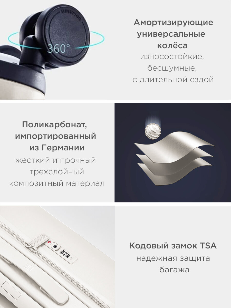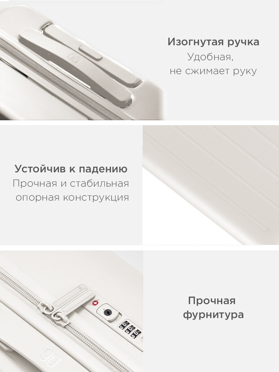 Чемодан Xiaomi NINETYGO Danube 20", серый, пластиковый, 4 колеса, блокировка замков для безопасности