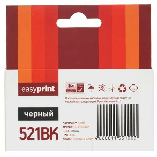 Картридж EasyPrint IC-CLI521BK для Canon PIXMA iP4700/MP540/620/980/MX860, черный, с чипом