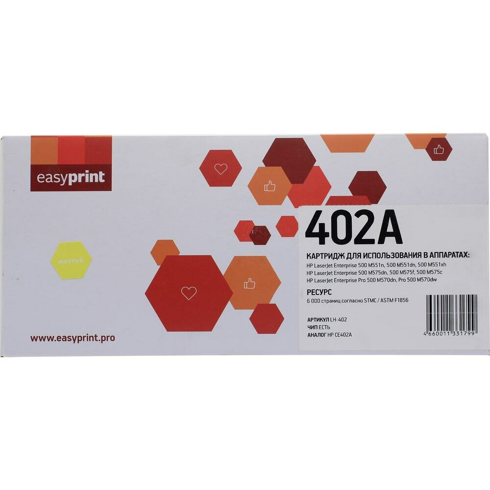 Лазерный картридж EasyPrint CE402A для принтеров HP LaserJet Enterprise 500 M551dn, M551n, M551xh, M575c, M575f, M575dn, M570dn, M570dw, желтый, 6000 страниц