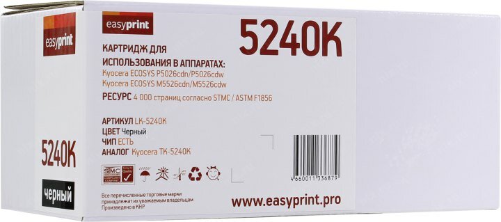 Тонер-картридж EasyPrint LK-5240K для Kyocera ECOSYS Р5026cdn/Р5026cdw/M5526cdn/M5526cdw (4000 стр.) черный, с чипом
