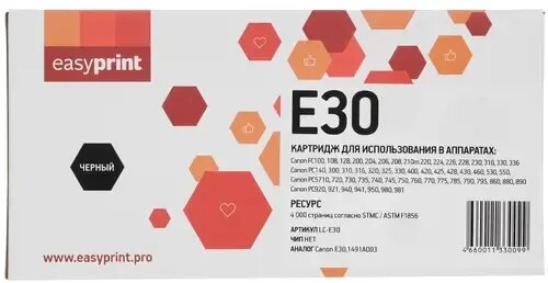 Easyprint Расходные материалы E-30 Картридж LC-E30 для Canon FC 108 128 210 220 228 230 330 PC330 760 860 4000 стр.