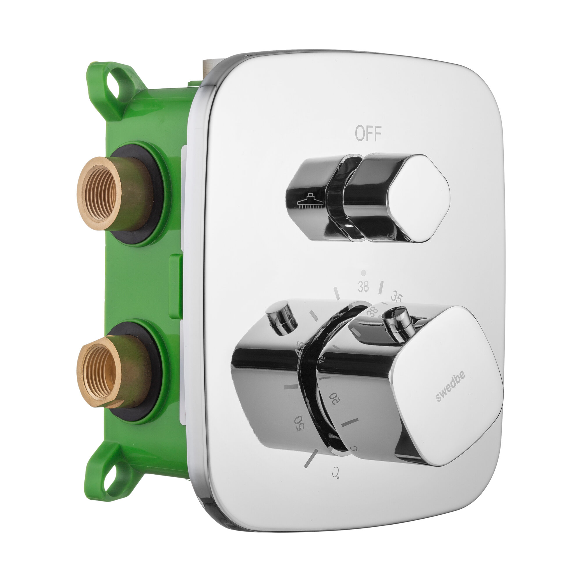 Встраиваемый термостатический смеситель подключение на 2 выхода в монтажном боксе Swedbe Platta 9031