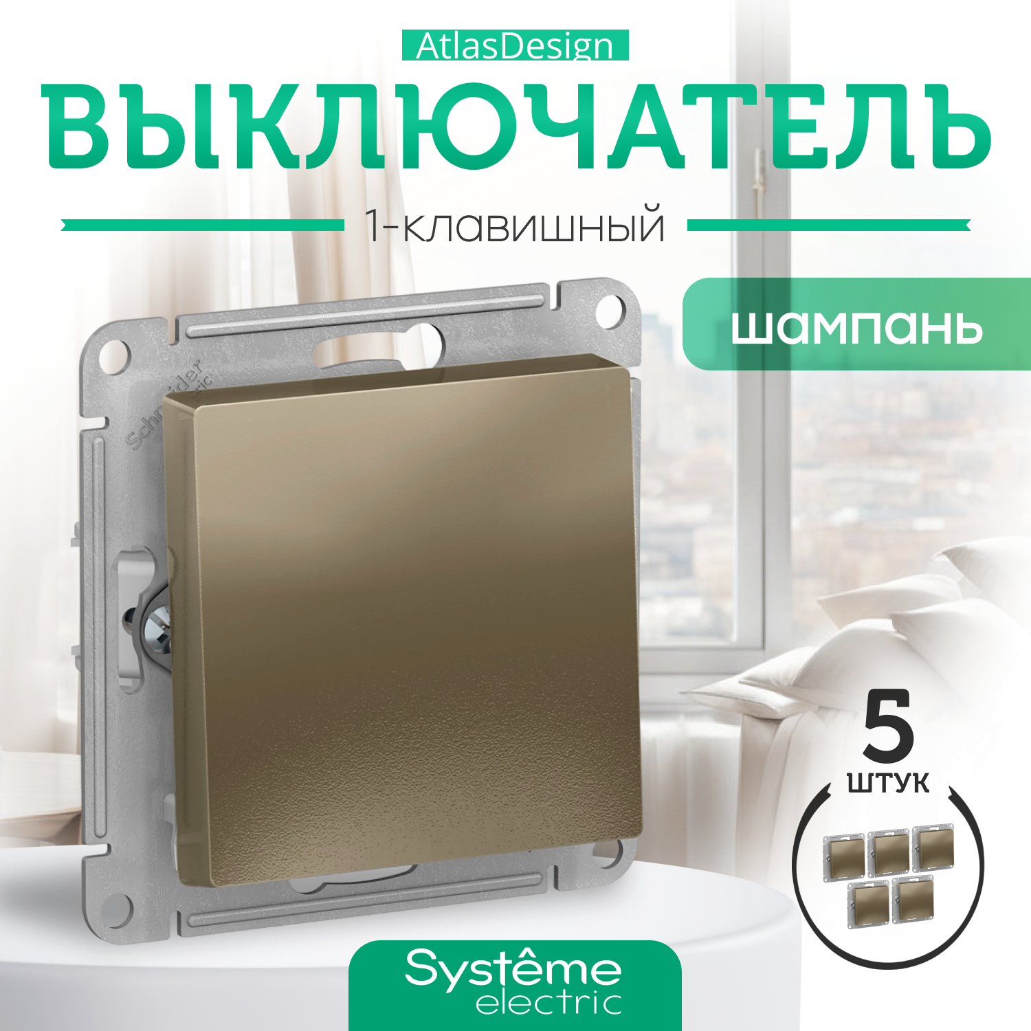 Купить Выключатель 1-клавишный 5шт Systeme Electric/Schneider Electric AtlasDesign 10А скрытой установки шампань ATN000511