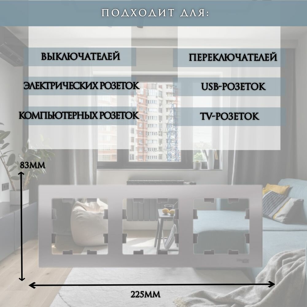 Рамка Systeme Electric Atlas Design тройная для розеток и выключателей алюминиевый - 3 шт.