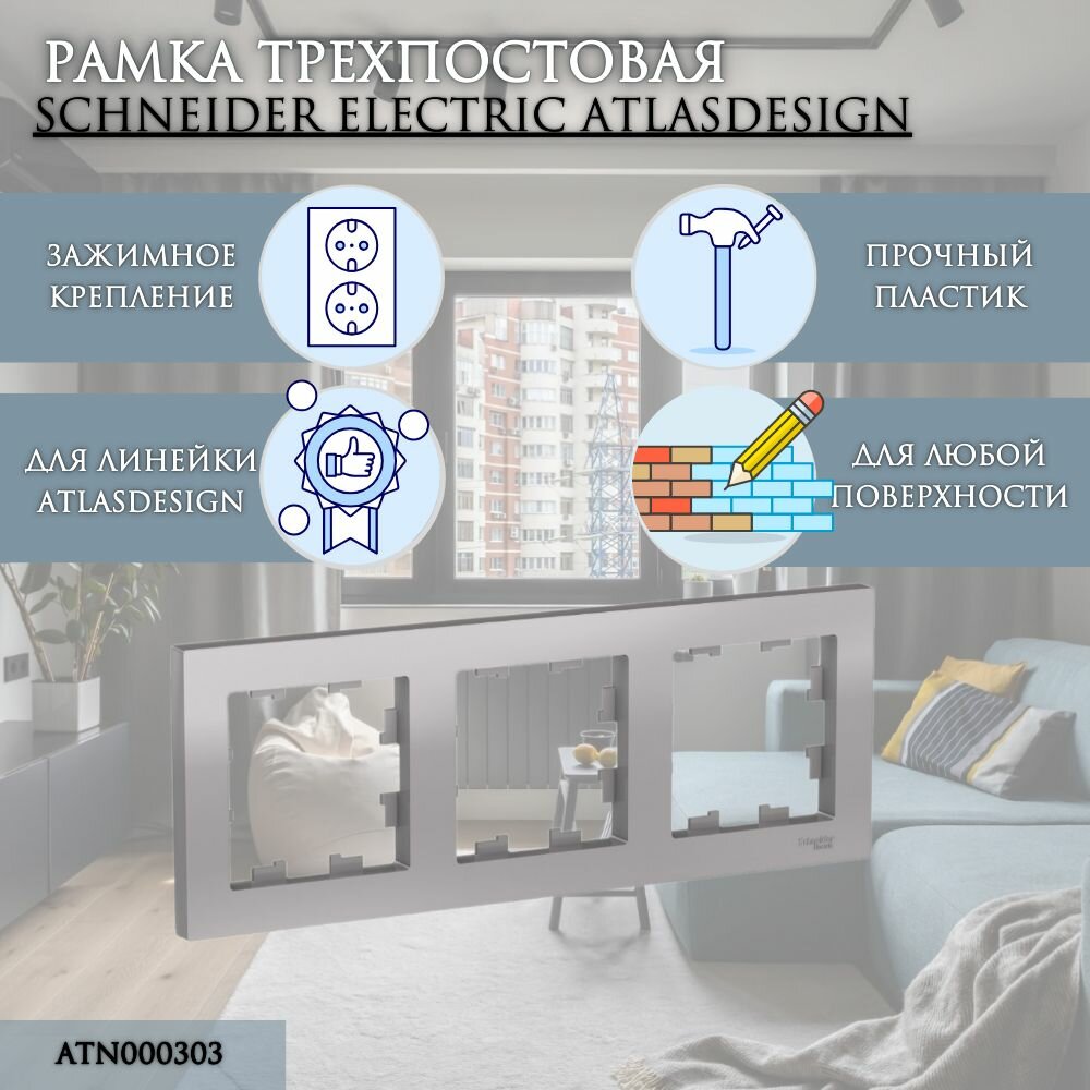 Рамка Schneider Electric Atlas Design ATN001003 трехместная универсальная карбон
