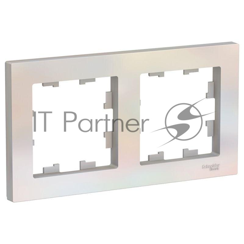 Рамка для розеток и выключателей двухпостовая (Алюминий), Schneider Electric AtlasDesign (комплект 3шт)