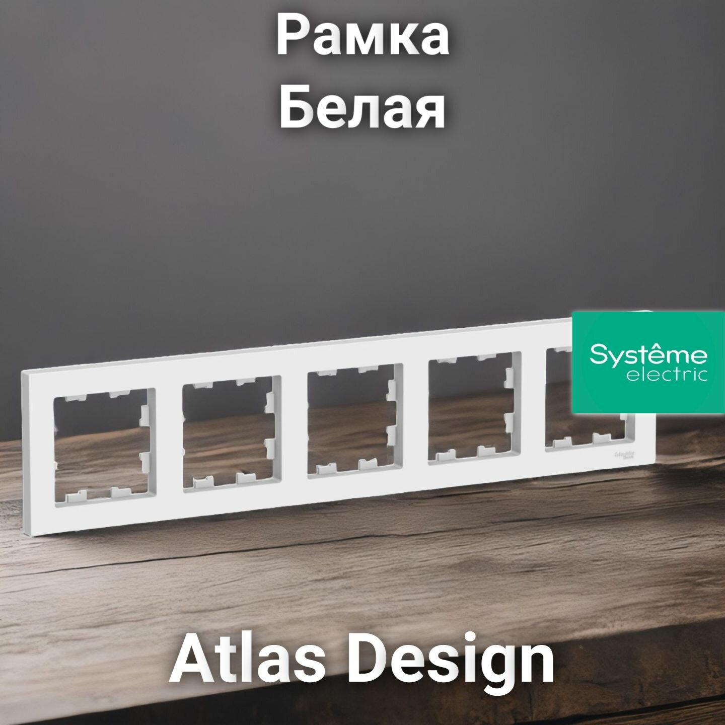 Купить Рамка 5-постовая для розеток и выключателей Schneider Electric/Systeme Electric AtlasDesign белый шнайдер ATN000105