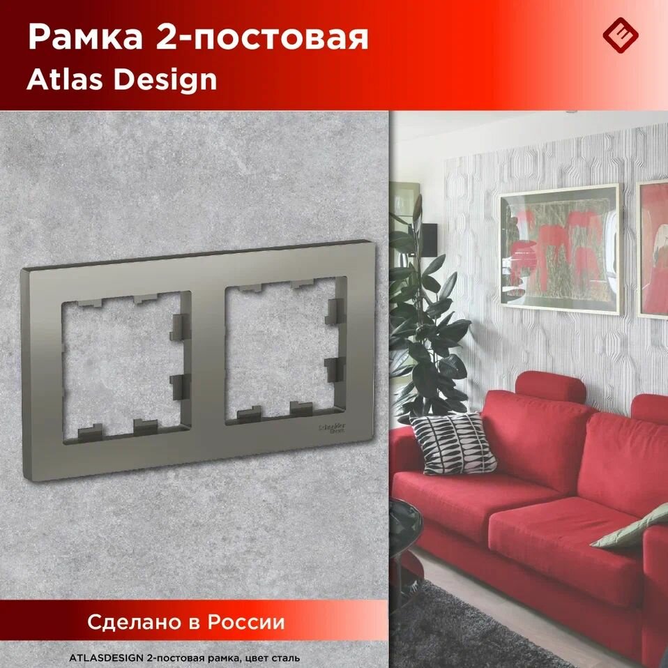 Рамка Systeme Electric Atlas Design двойная для розеток и выключателей сталь - 2 шт.