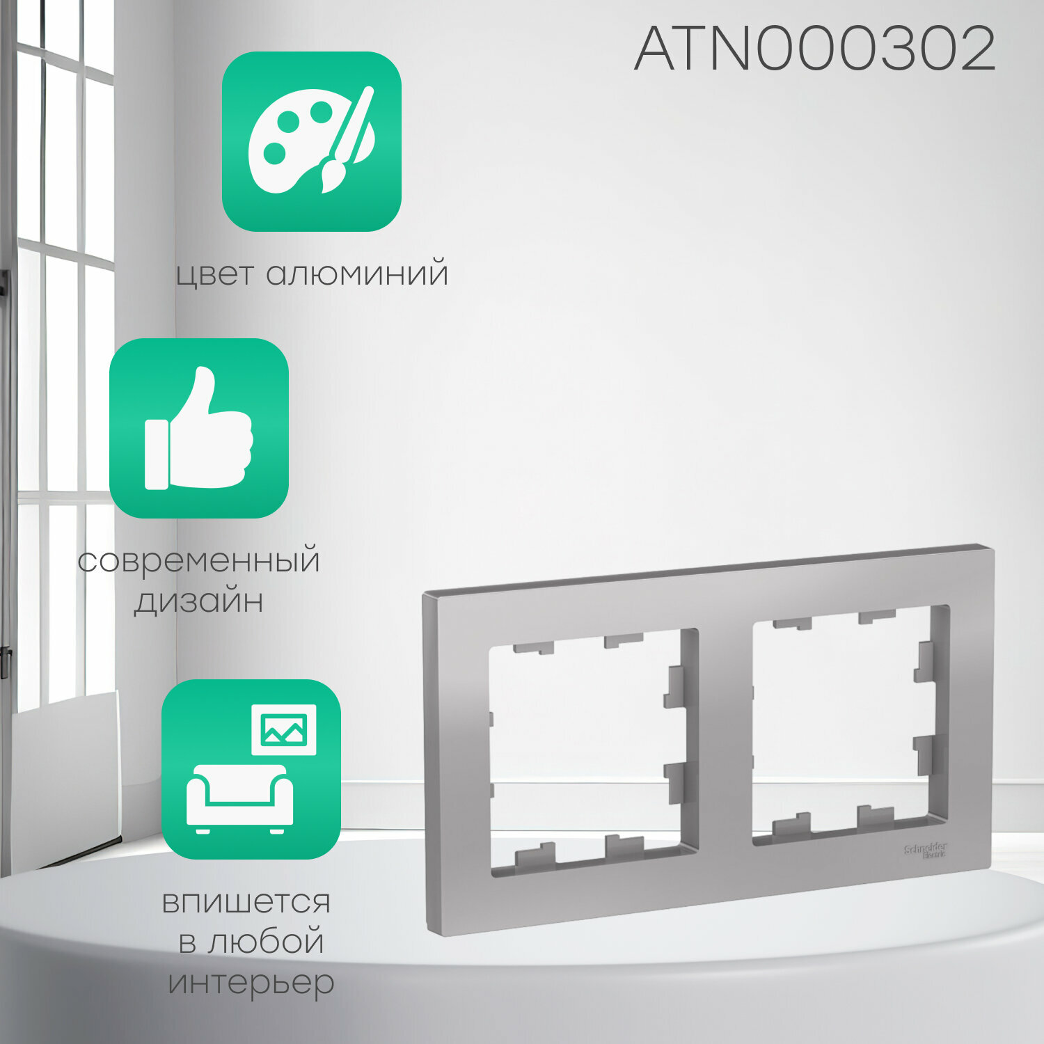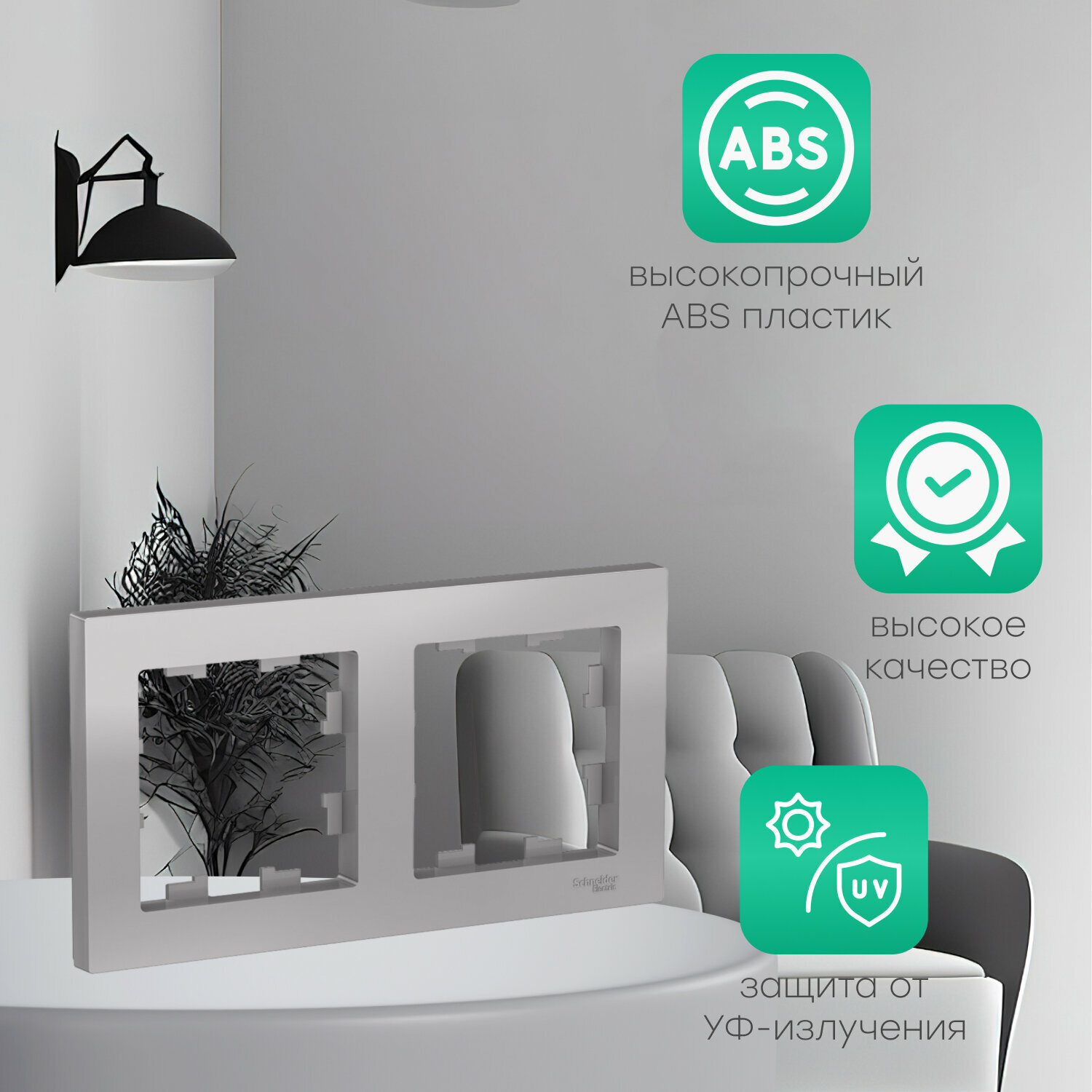 Рамка для розеток и выключателей двухпостовая (Алюминий), Schneider Electric AtlasDesign (комплект 3шт)