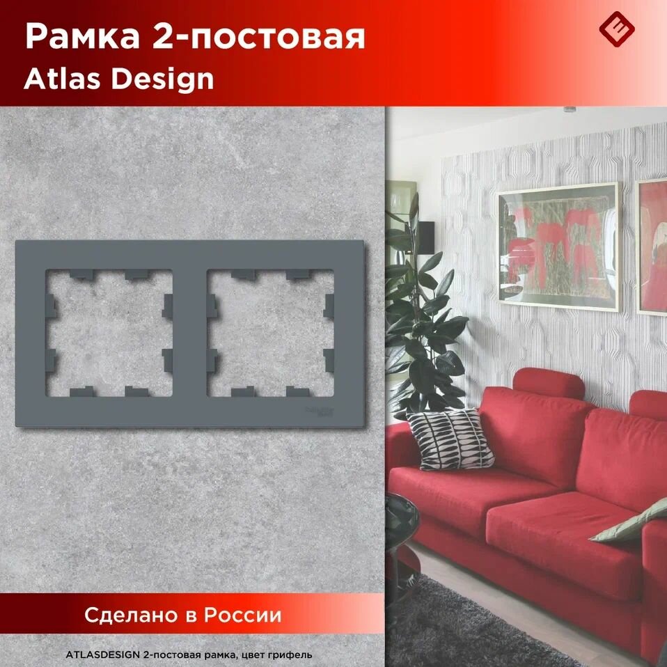 СохранитьРамка для розетки выключателя двойная Schneider Electric (Systeme Electric) Atlas Design Антибактериальное покрытие Грифель ATN000702 3шт интересное: