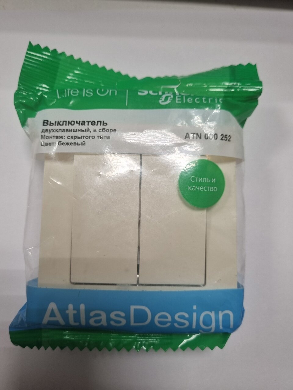Выключатель Schneider Electric AtlasDesign двухклавишный бежевый (комплект из 2 шт)