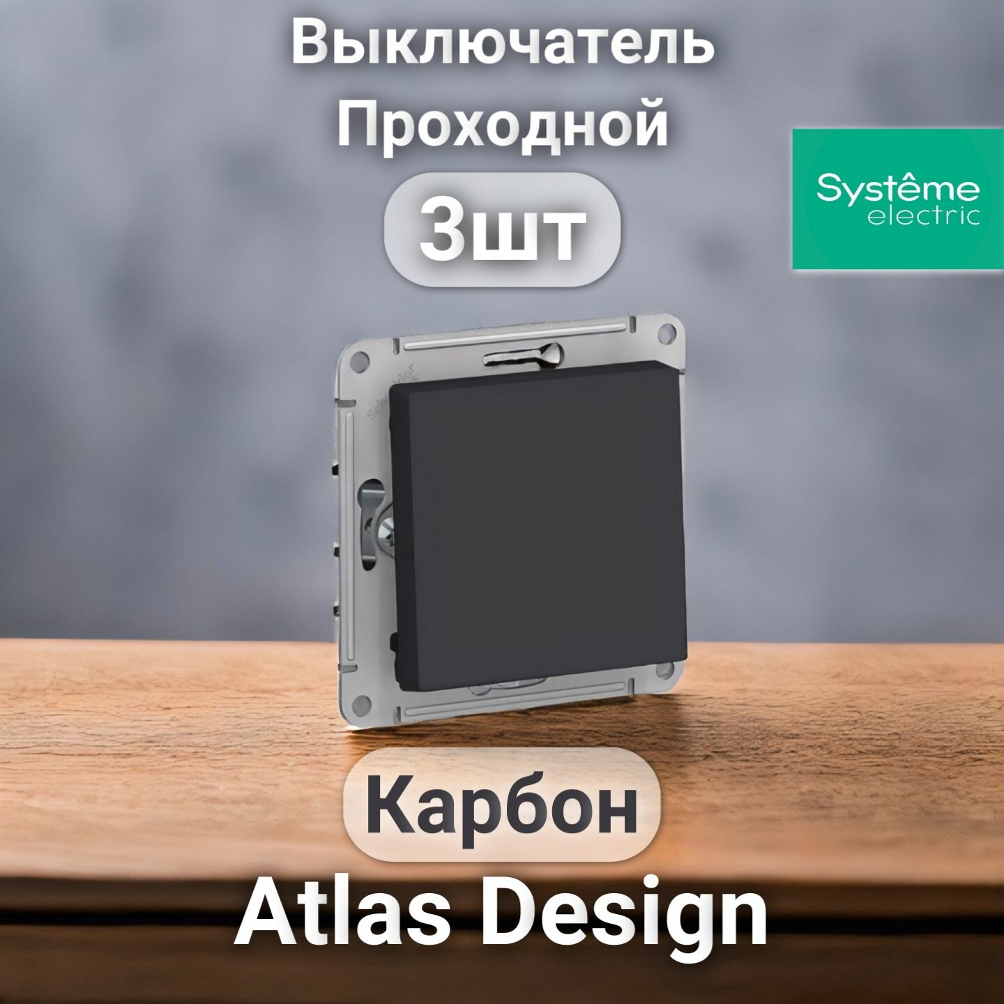 СохранитьВыключатель 1-клавишный проходной Systeme Electric Atlas Design Карбон (3 шт) интересное: